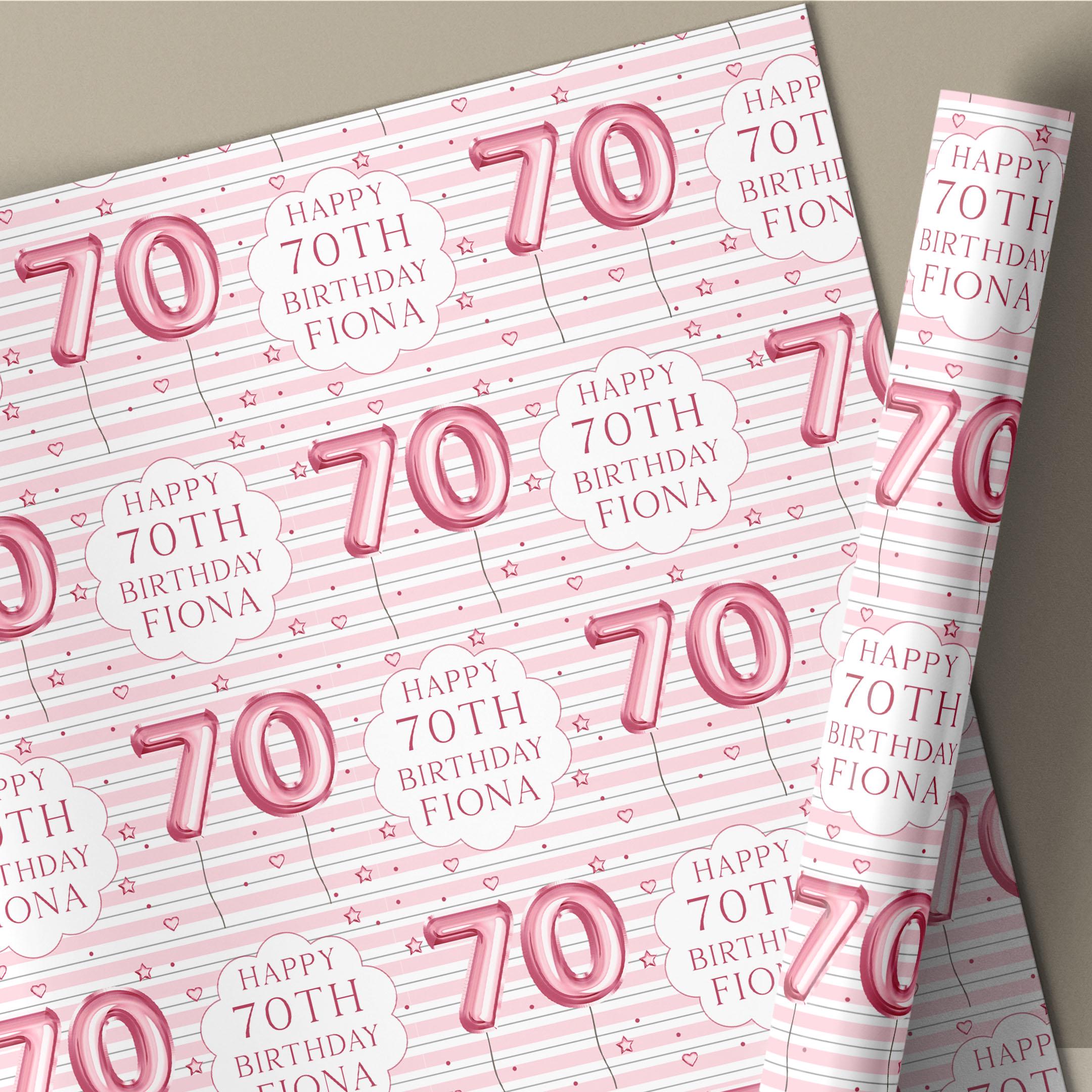 Personalised 70th Birthday Gift Wrapping Paper for Her, Happy 70th ...