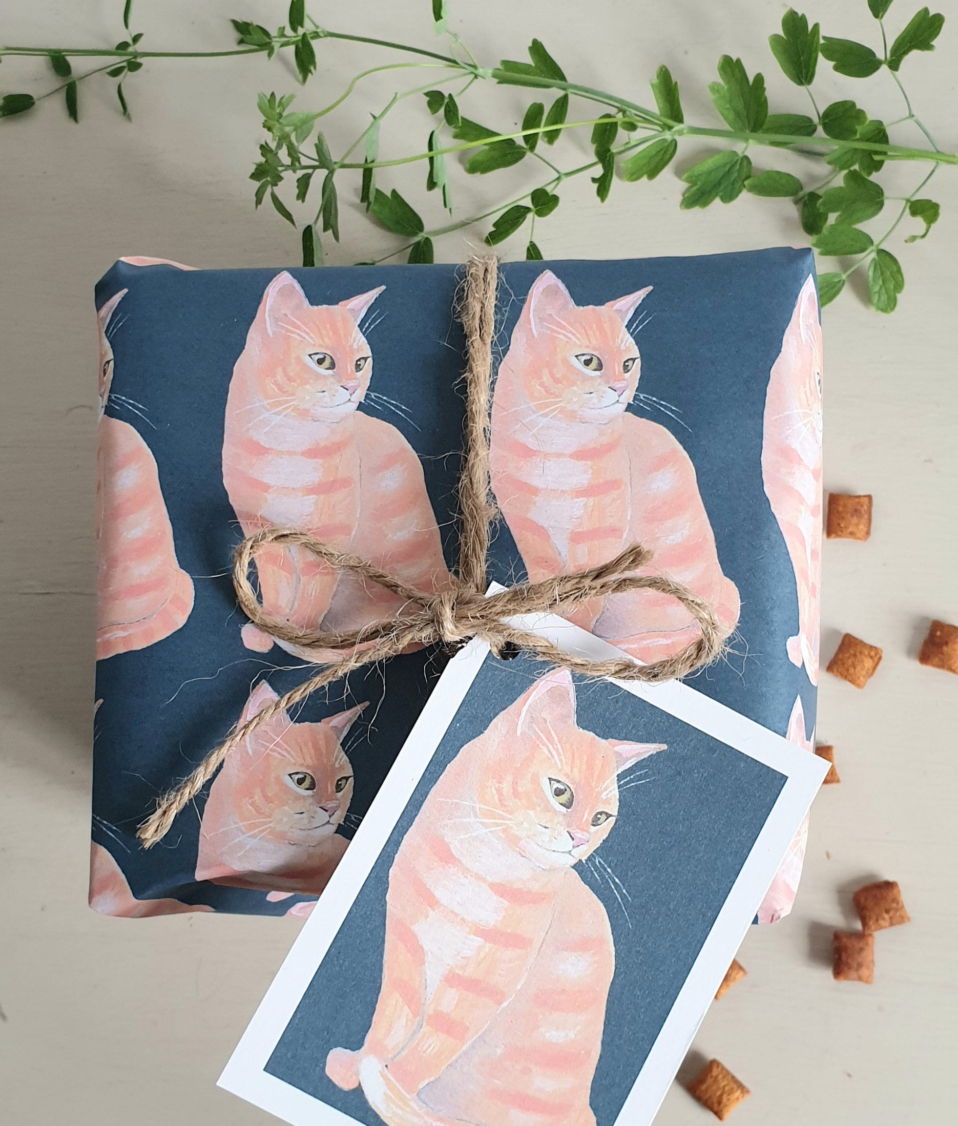 Ginger cat wrapping paper. Originally hand painted then printed on 100% recycled paper. it comes wit...