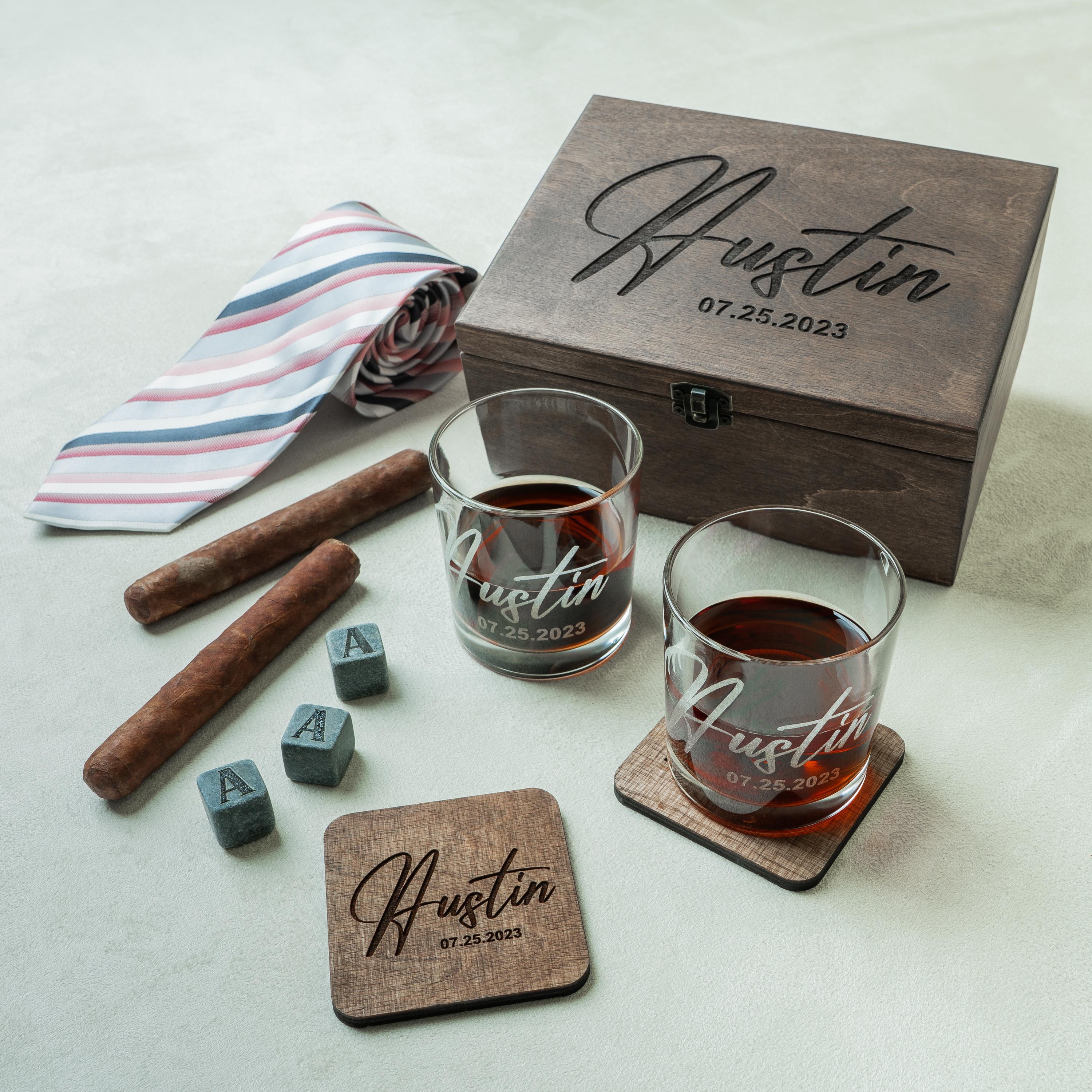 "A personalized whiskey gift set is great for Groomsman, Best Man, Dad, Best Friend, Father of ...