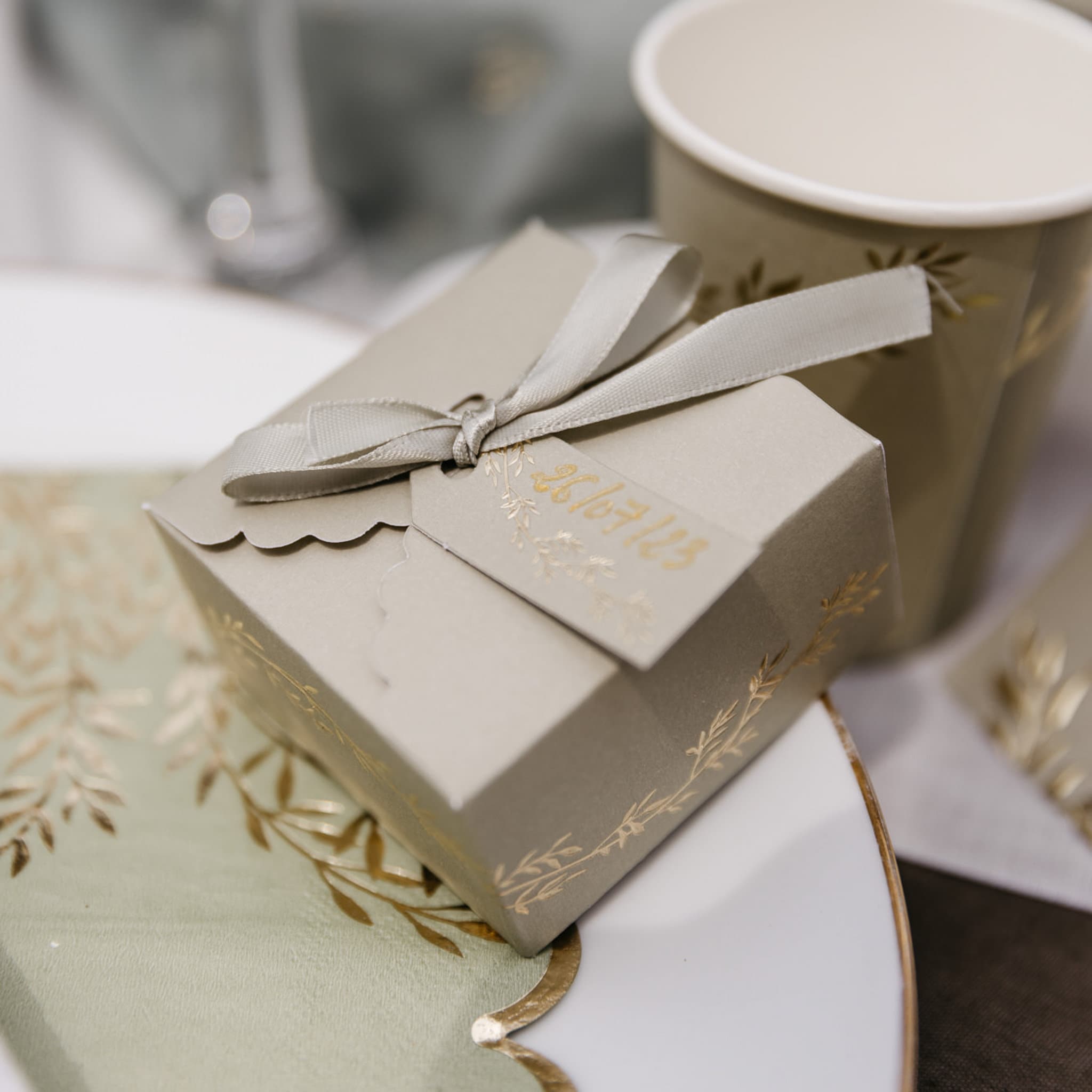 10 Sage Green and Gold Leaves Print Treat Boxes, Sage Coloured Than...