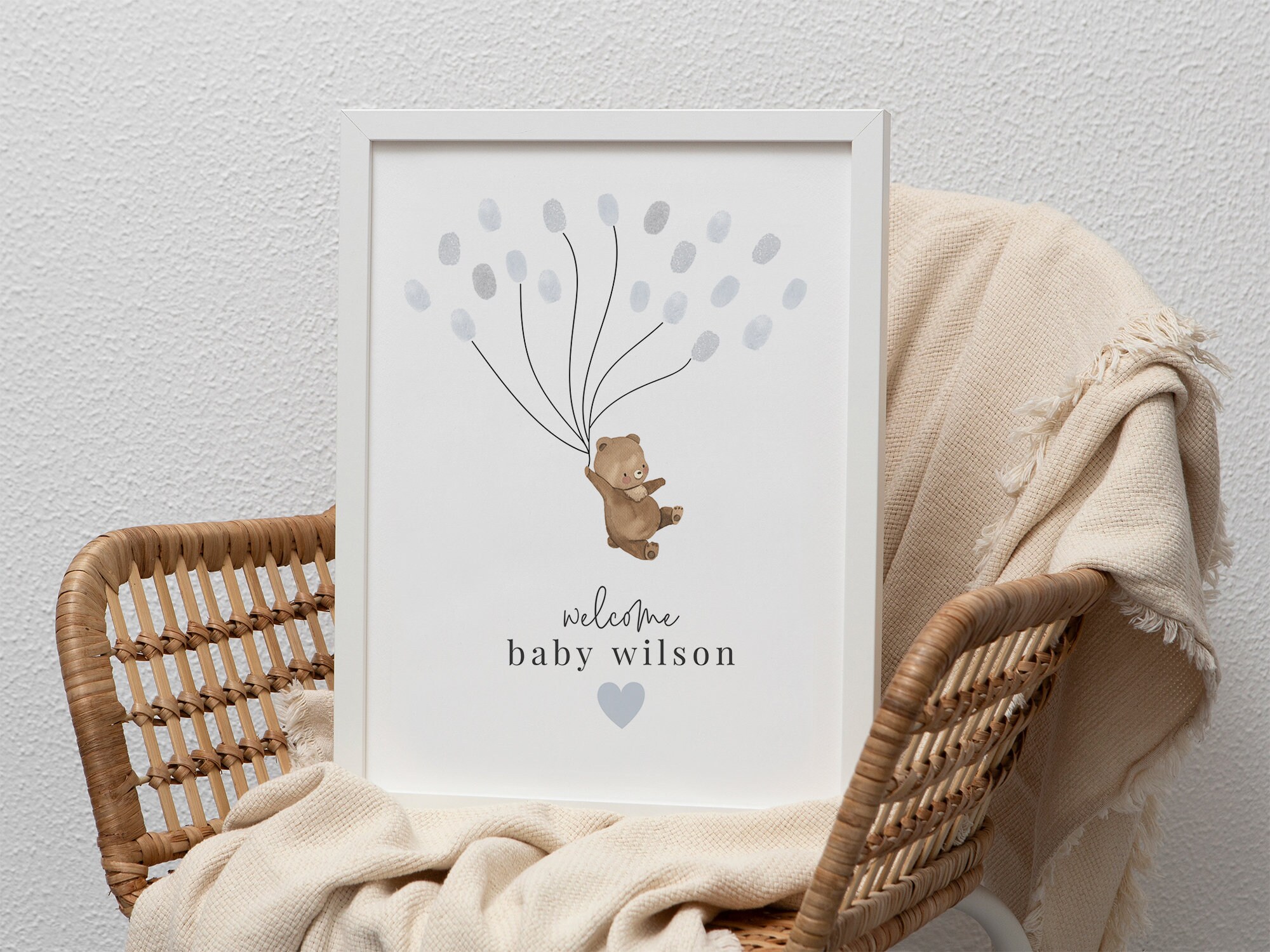 Baby Shower Guestbook Print, Baby Boy Shower, Bear Balloon, Fingerp...