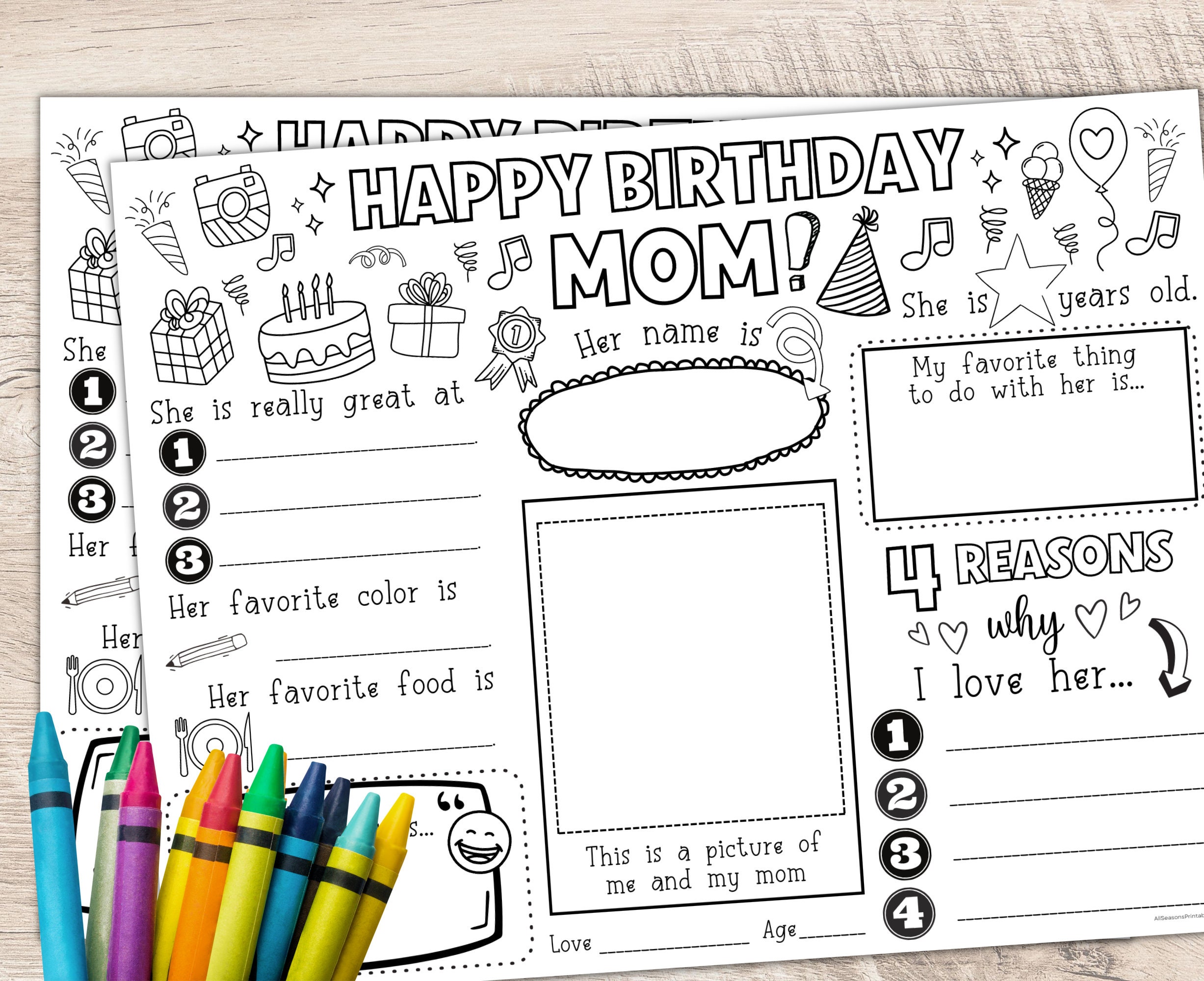"* \"All About My Mom Birthday\" Fill in the Blanks Coloring Page * DIGITAL * PRINT Y...