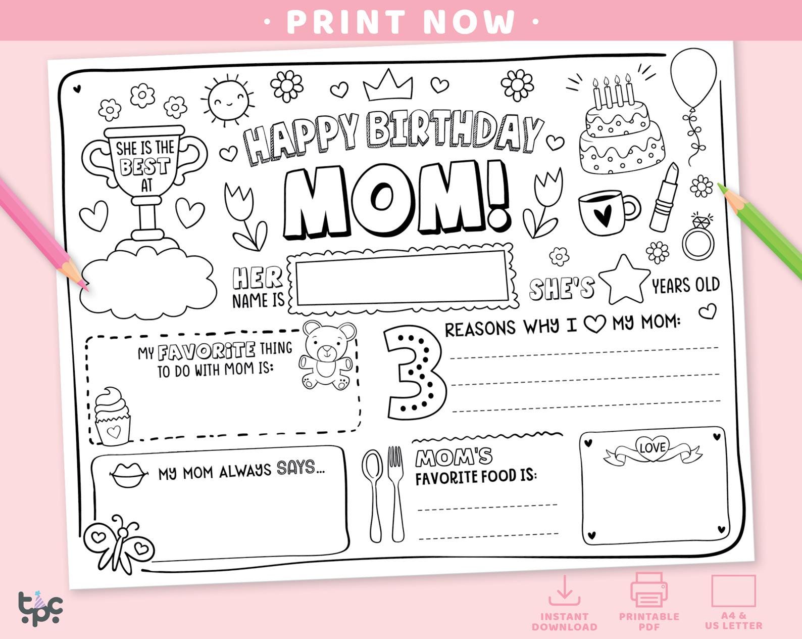 Happy Birthday Mom Coloring Page | Printable All About Mom Fill In ...