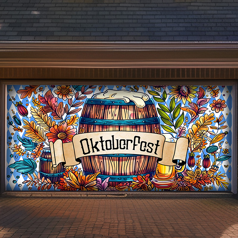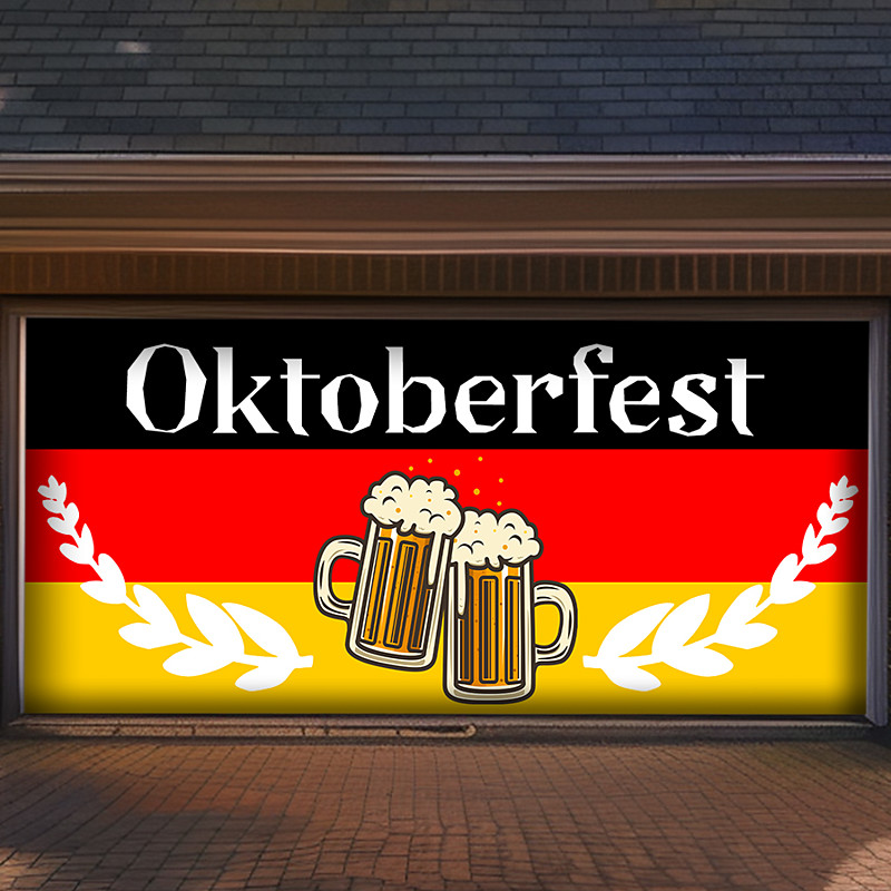 German Oktoberfest 2025 Outdoor Garage Door Cover Banner Pretzel Be...