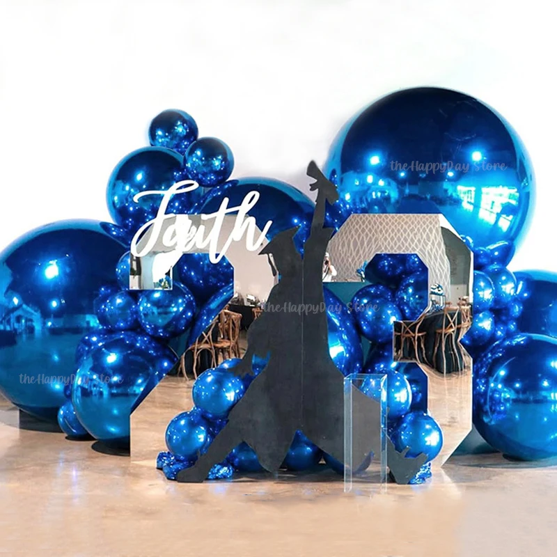 70-10IN Royal Blue 4D Round Foil Balloons Metal 4D Mylar Foil Balloons Helium Balloon for Birthday G...