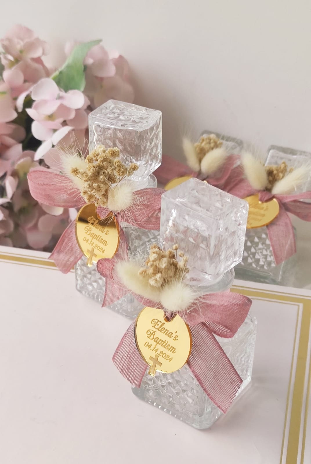 Personalized Holy Water Glass Bottle, Baptism Favor For Girl and Bo...