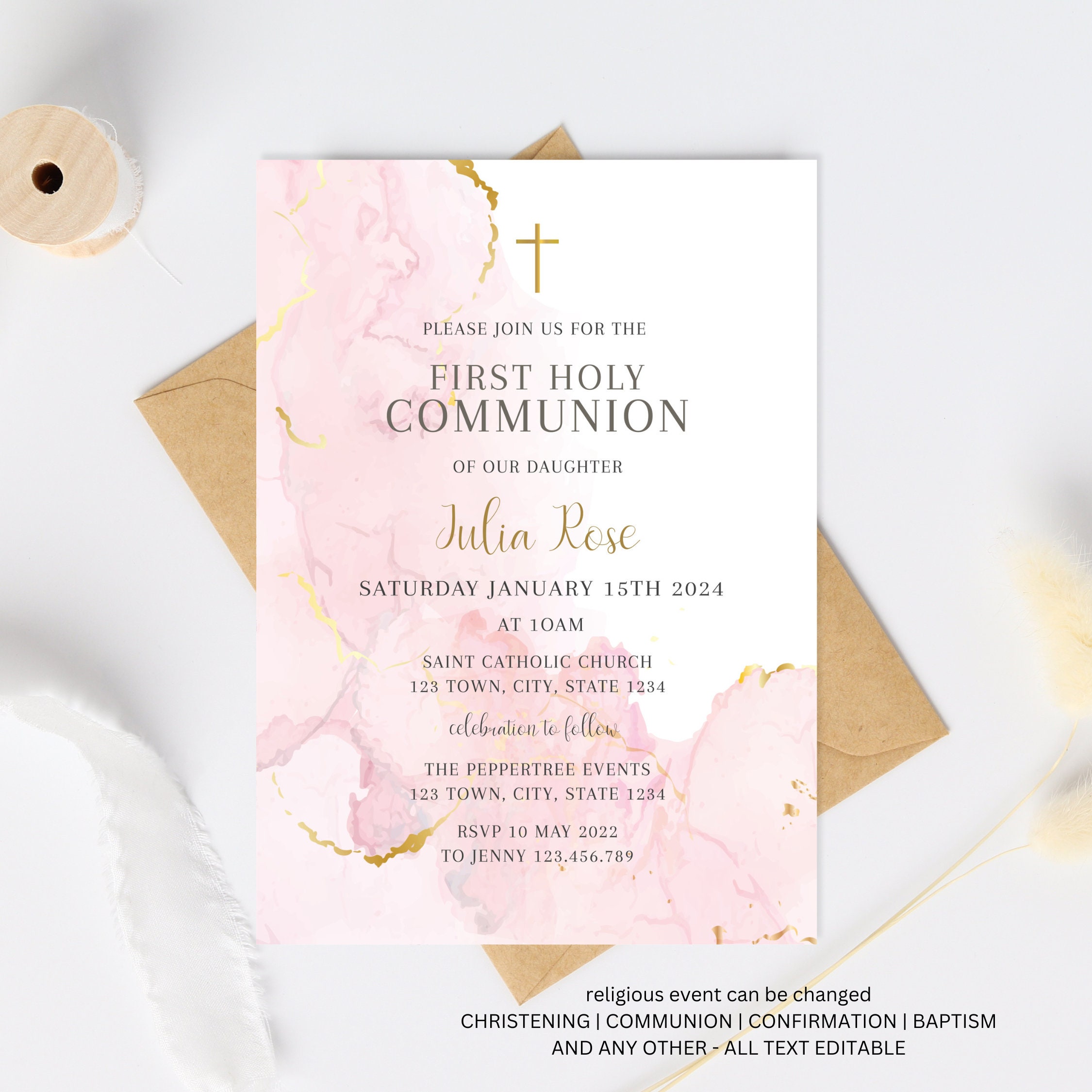 Holy Communion Invitation Template, First Holy Communion invite, Gi...