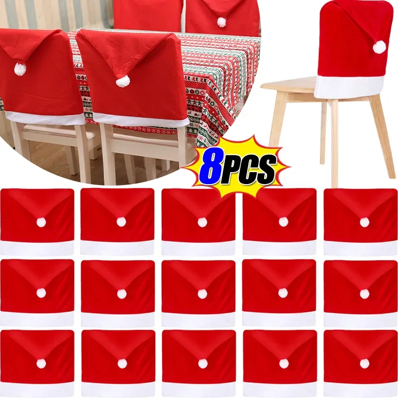 8/2PCS Chair Cover Red Non-woven Santa Hat Chair Back Cover Table Decoration Dining Chair Protector ...