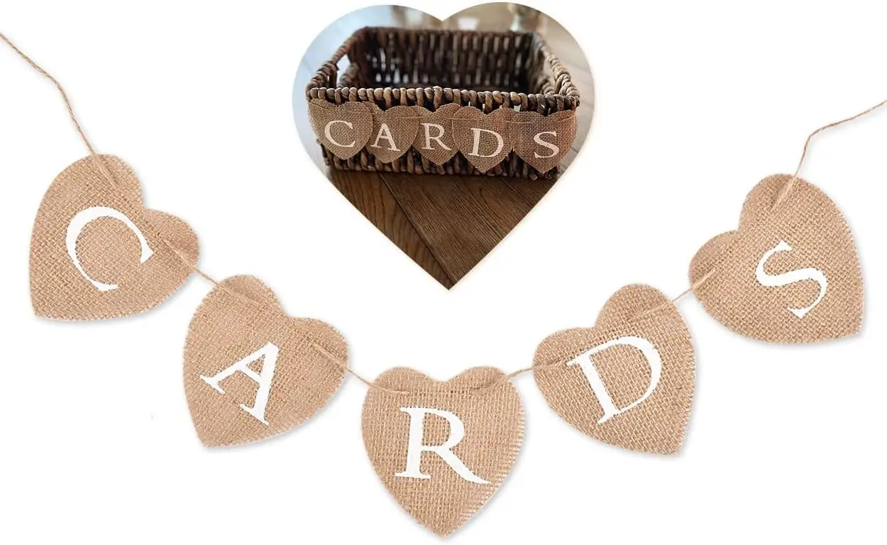 Cards Banner 9 x 9cm Heart Jute Burlap Banner Jute Garland for Party Decoration, Photo Prop, Wedding...
