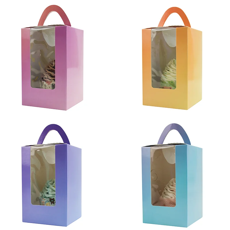 Gradient Colors Mix One Hole Cupcake Packaging Paper Box With Handl...