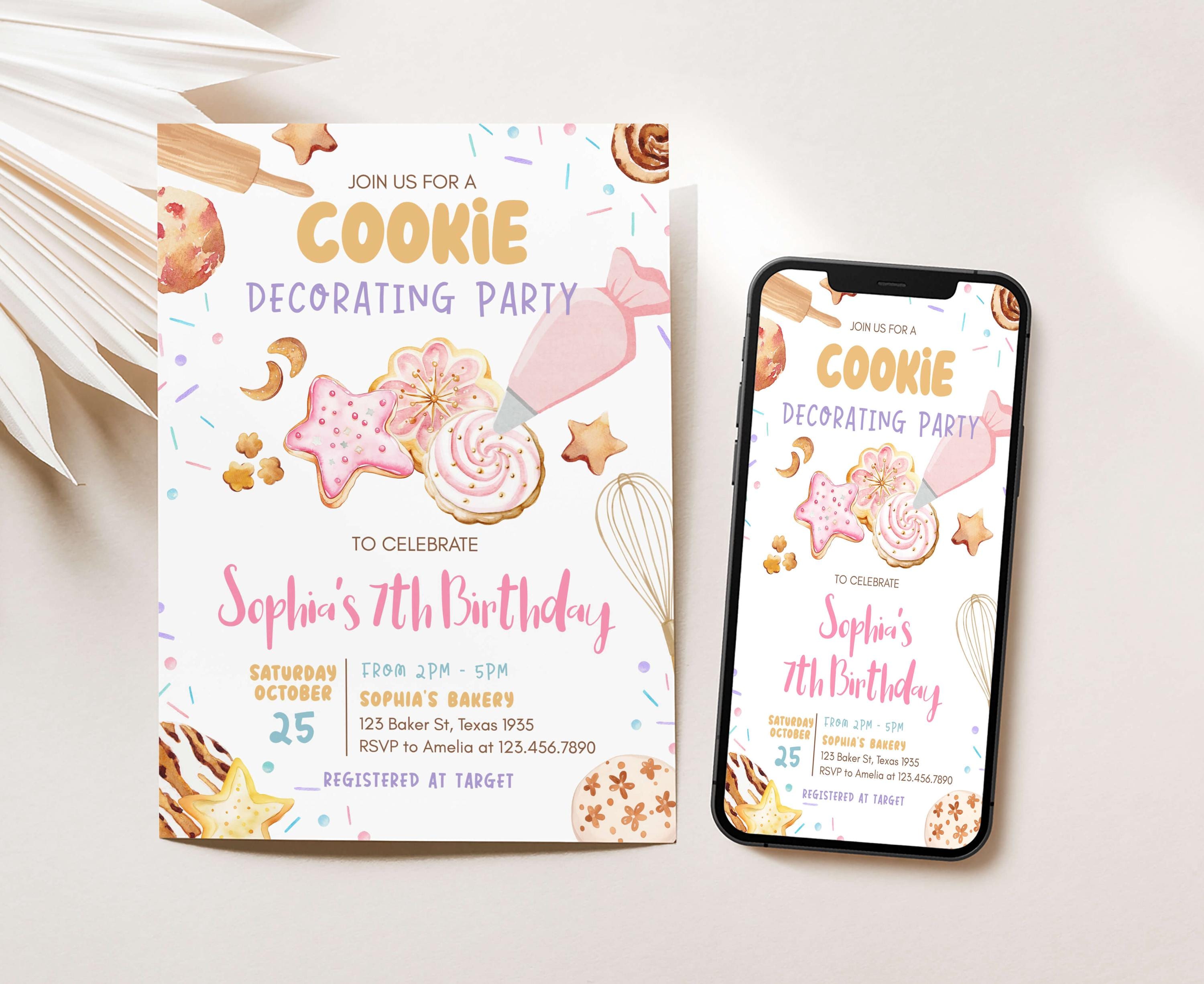 Editable Cookie Decorating Party Invitation, Cookie Baking Birthday...
