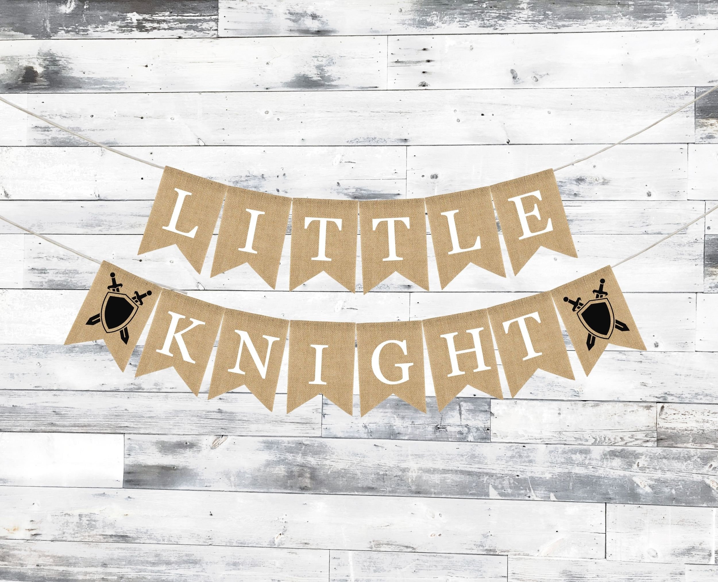 This listing is for a 'LITTLE KNIGHT' burlap banner. Banner details: - Burlap pennants each measurin...