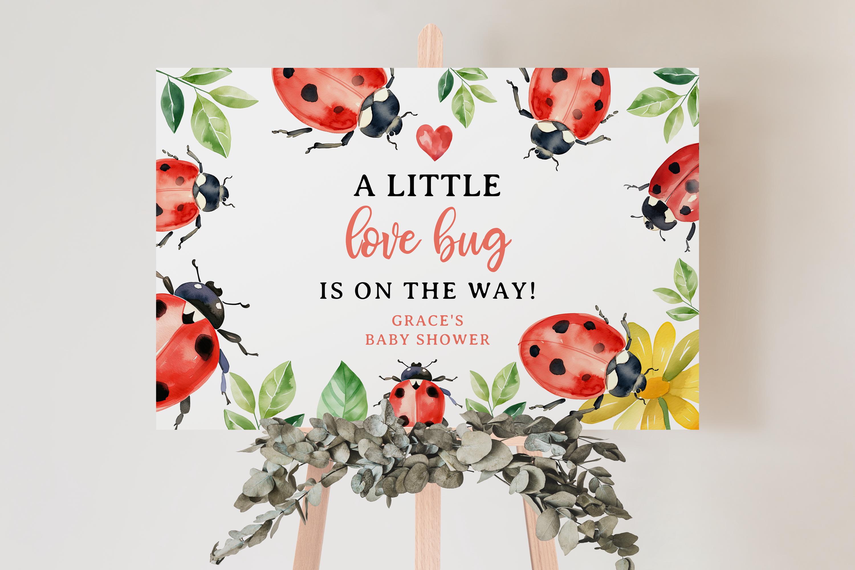 "Welcome your guests to your baby shower with this adorable Ladybug Welcome Sign. Featuring a s...