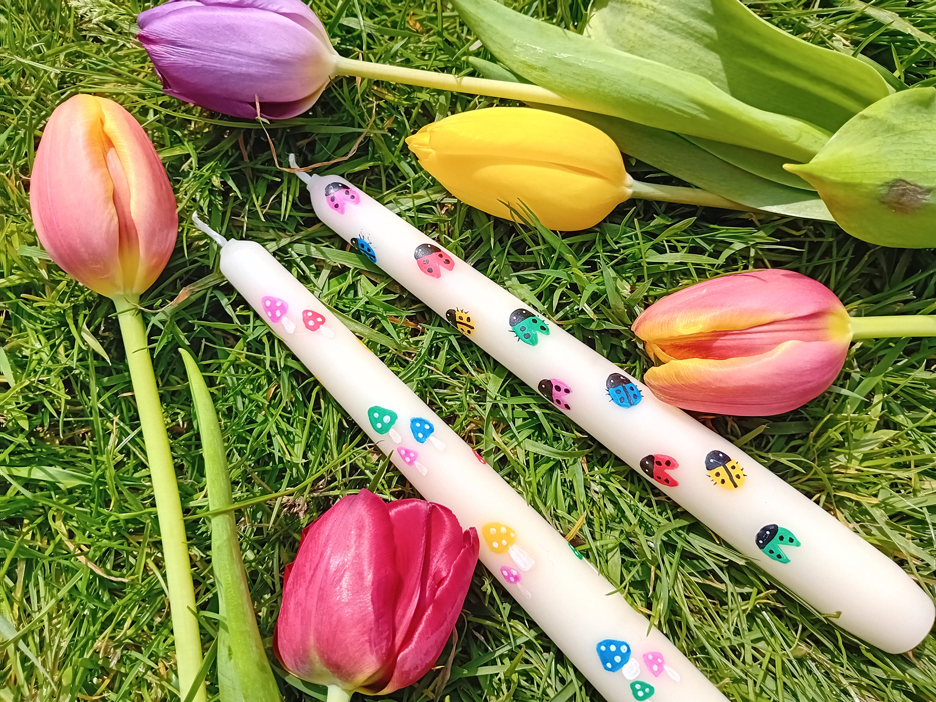 Hand painted taper candle summer. Mushroom candle. Ladybird candle....