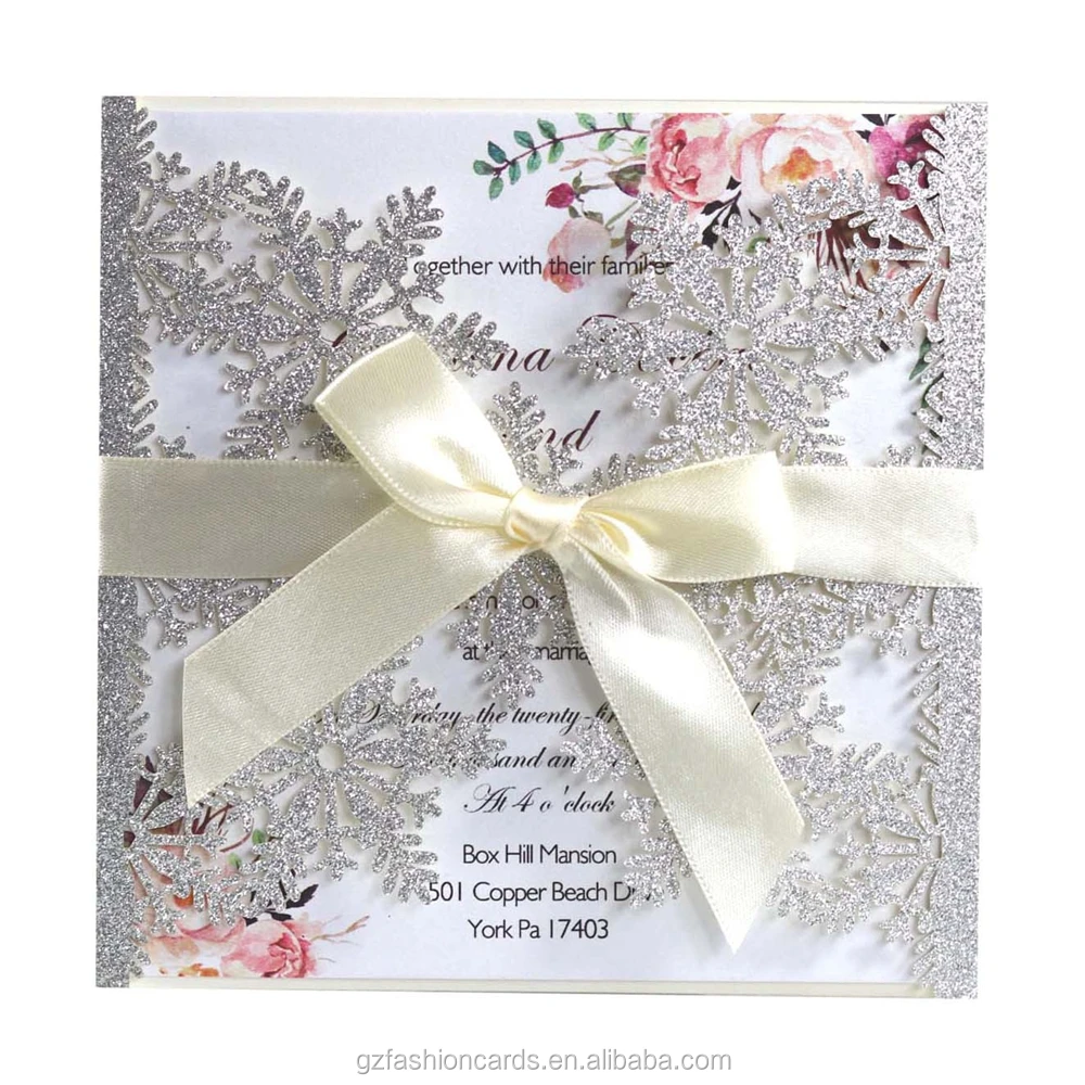 Square Laser Snowflake Glitter Invitation Card Pattern Wholesale Cu...