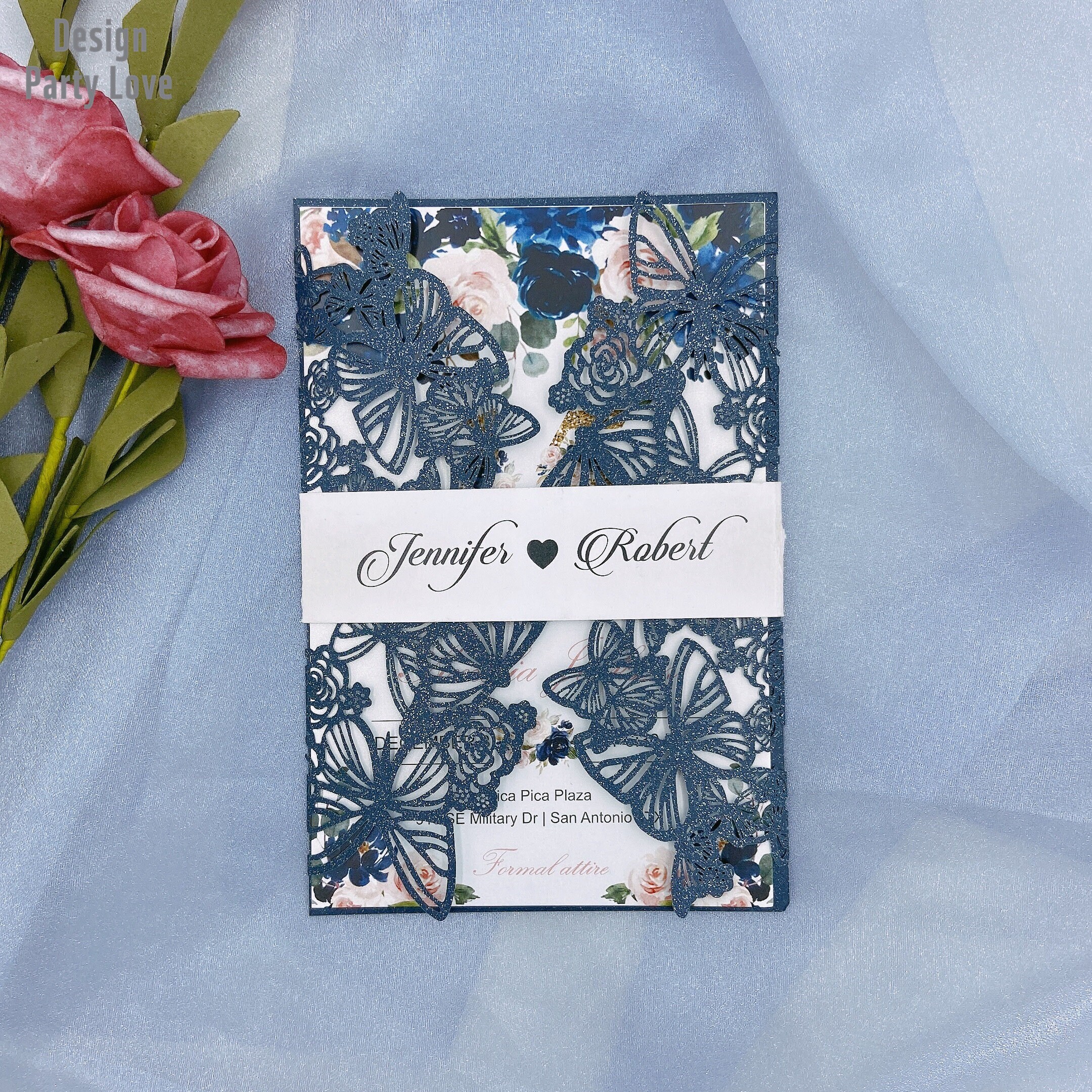 Dark Navy Butterfly Laser Cut Invitations Cards Invitation Quincean...