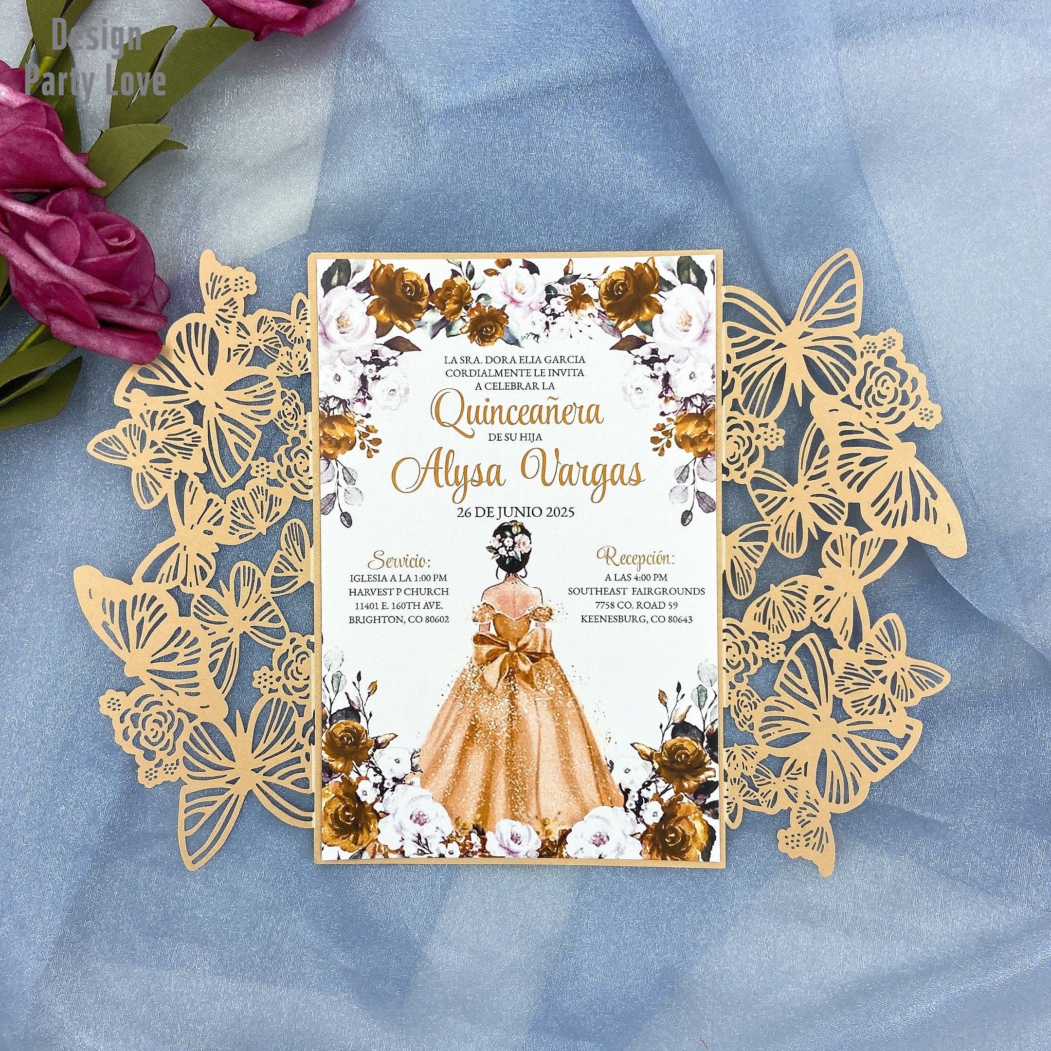 Dark Gold Butterfly Laser Cut Invitations Cards Invitation Quincean...