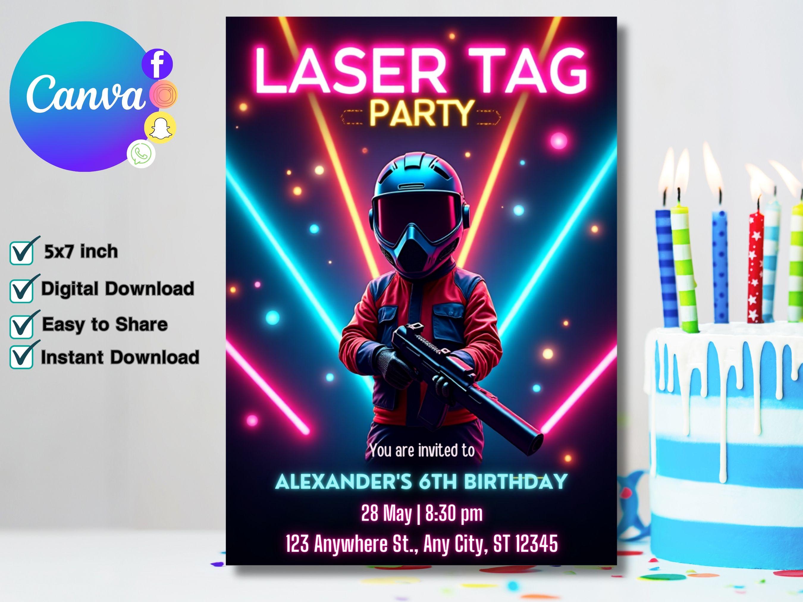 Laser Tag Birthday Invitation,Laser Tag Party Invitation,Glow Laser...