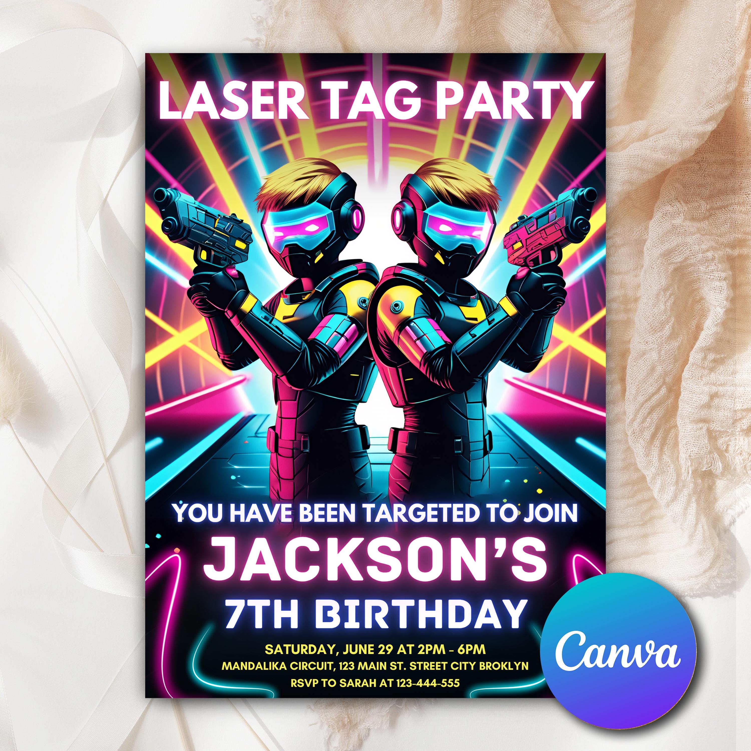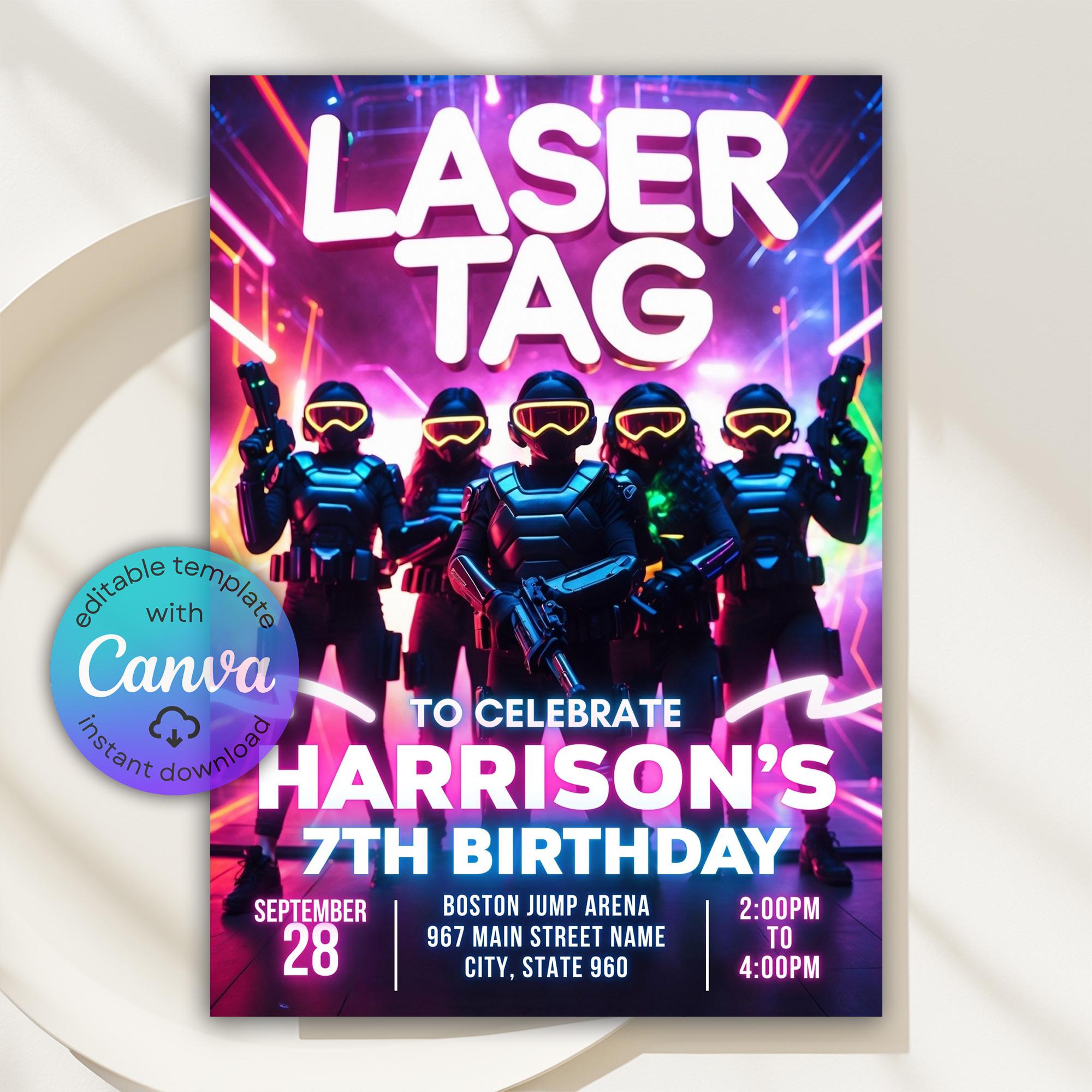 Laser Tag Birthday Invitation Template, Laser Tag Invitation, Neon ...