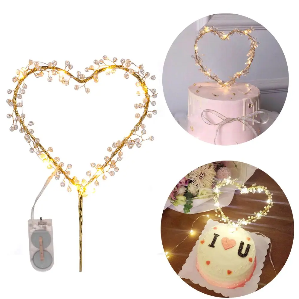 LED Light Cake Topper Iron Cupcake Decoration Heart Cake Topper for...