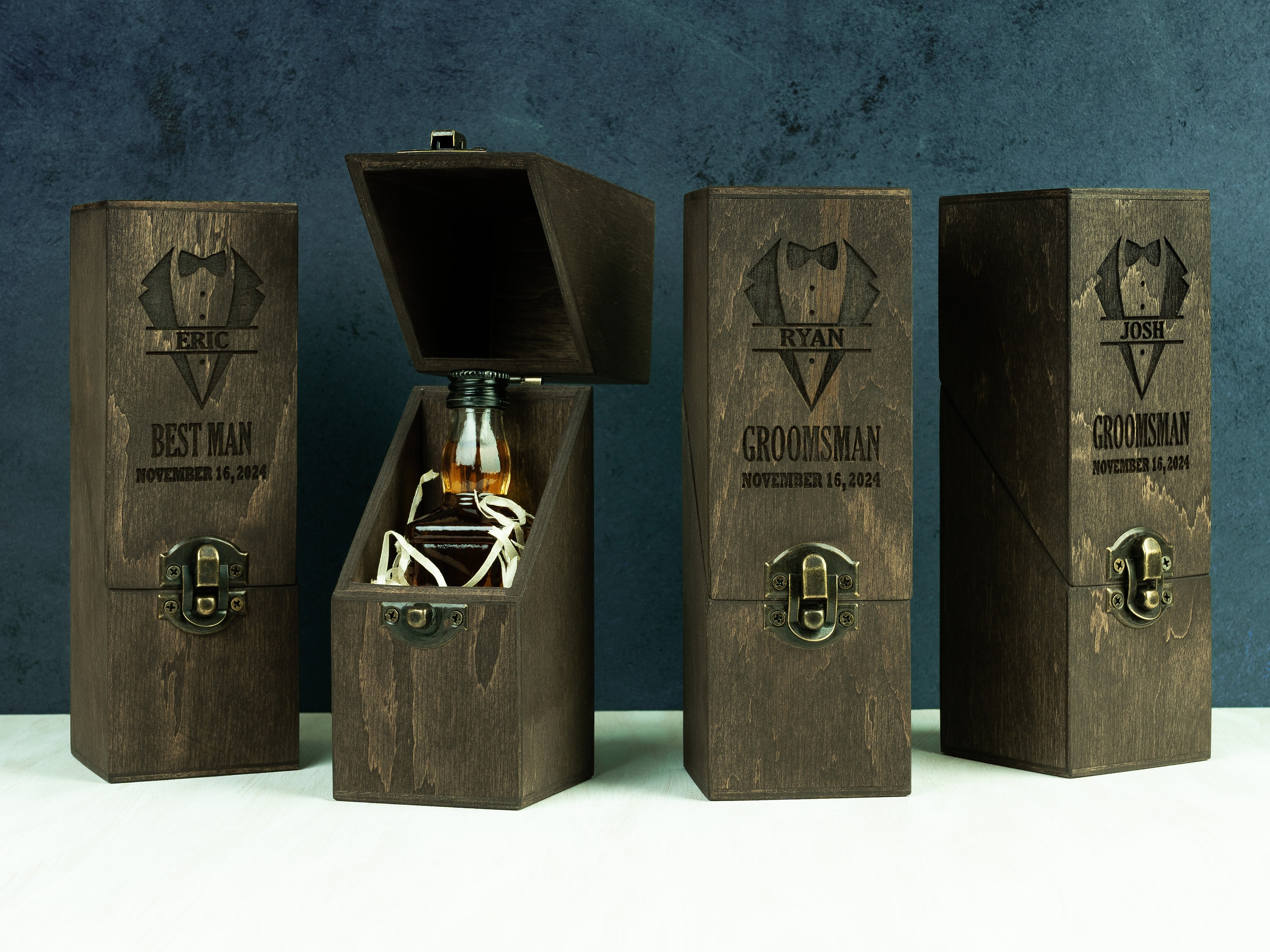 Personalized Groomsman Gift Box: Engraved Wooden Liquor Box