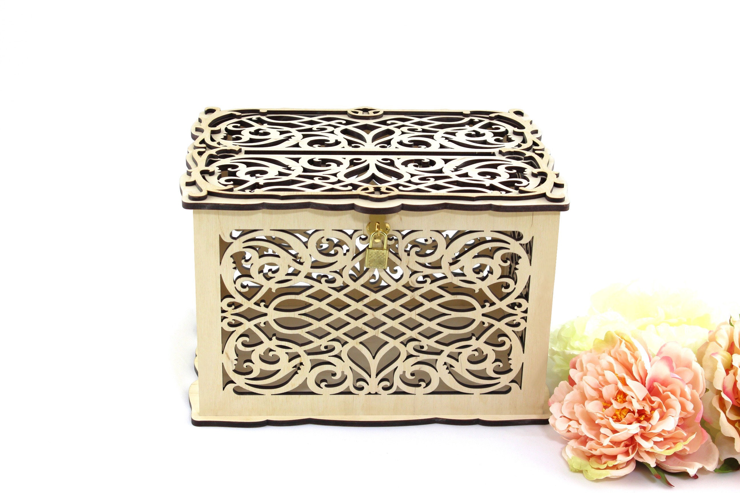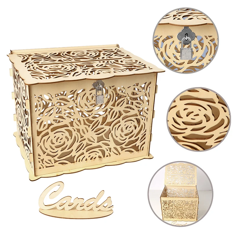 Wedding Gift Card Box Wooden Money Large Box With Lock Mariage Invi...