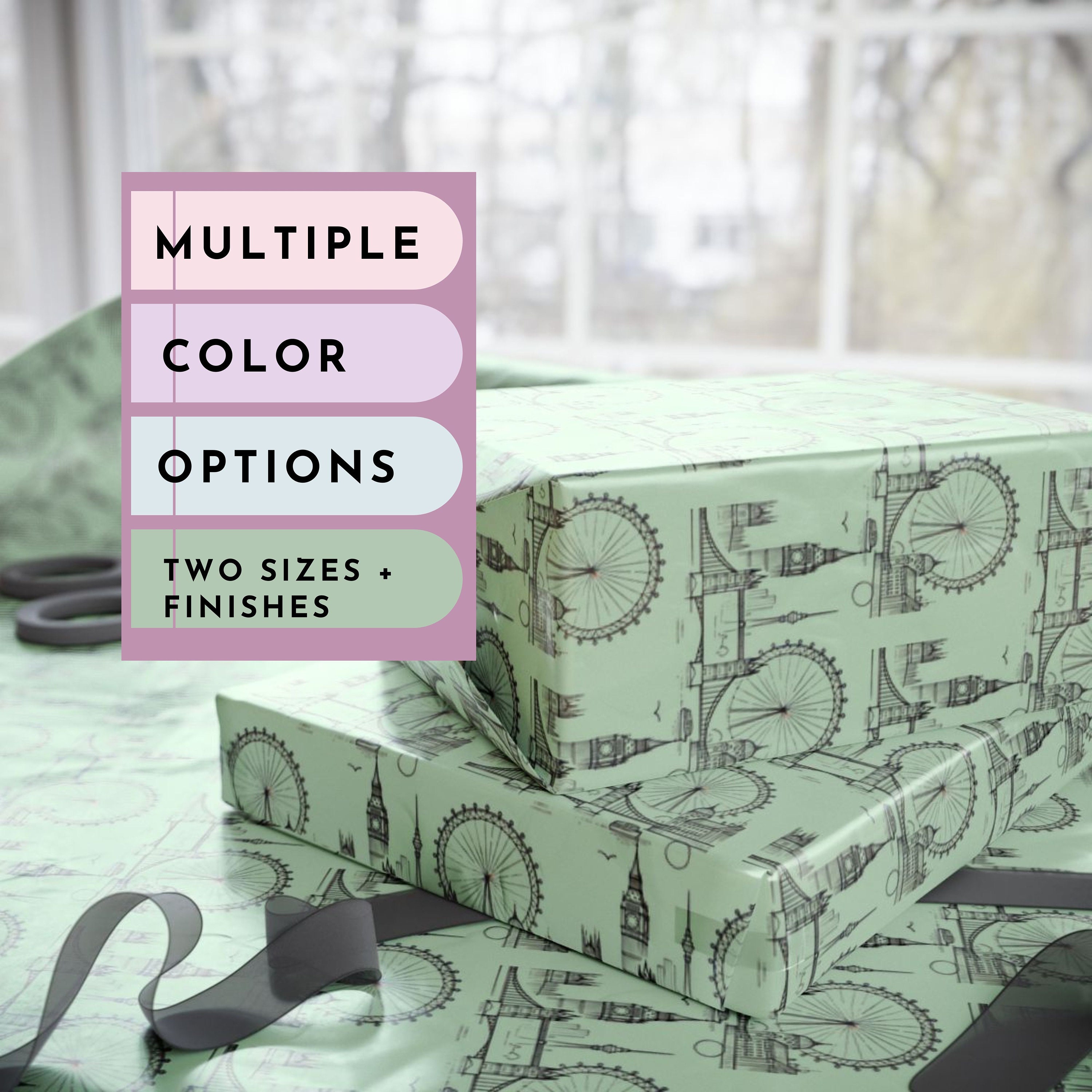 Green London Wrapping Paper, London Gift Wrap Roll, Holiday Gift Wr...
