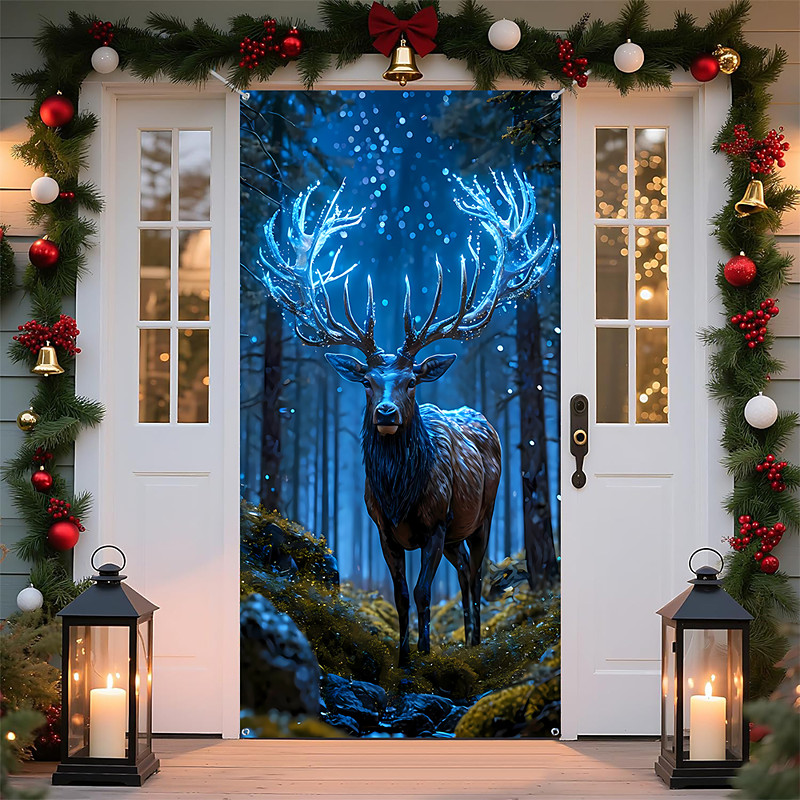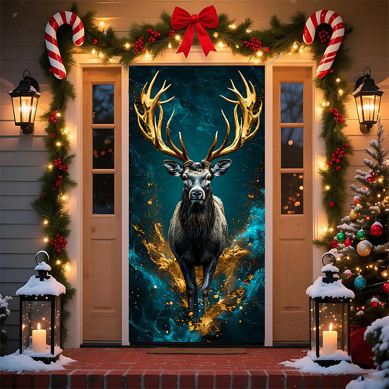 Christmas Posters Door Cover Outdoor Banners Reindeer Modern 3D Par...