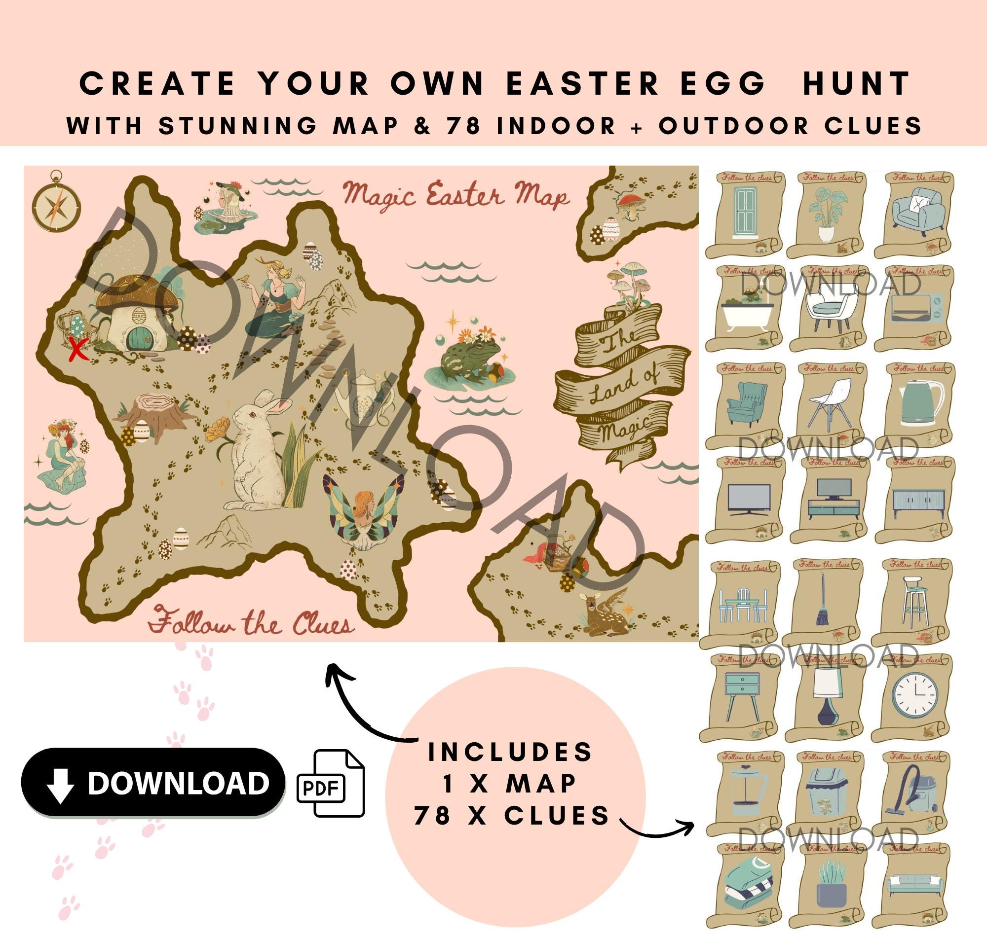 Easter Egg Hunt Map & Clues for kids, Easter Treasure Hunt, Tre...
