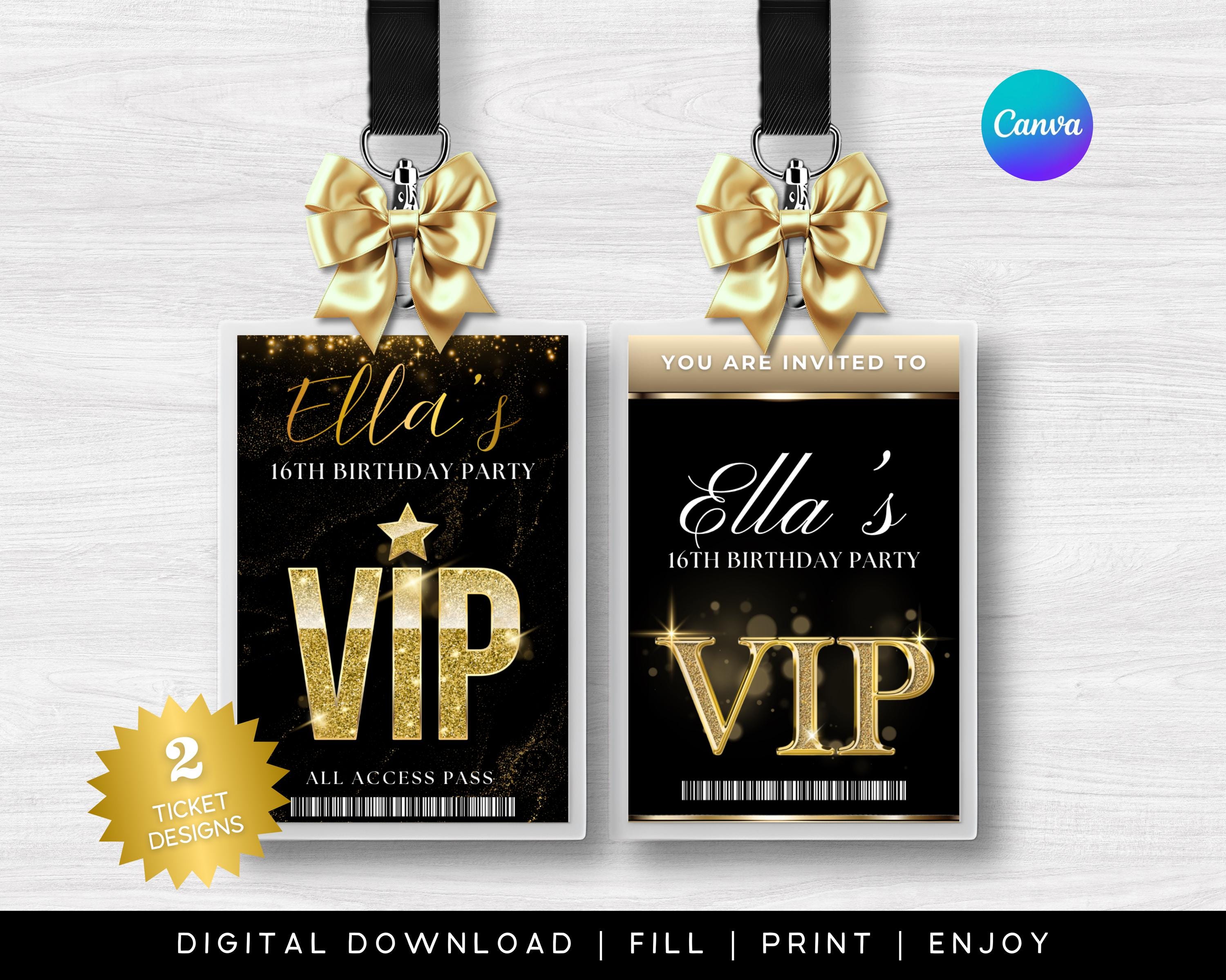 Gold VIP Pass Party Invitation, VIP Insert for Lanyard, VIP Pass In...