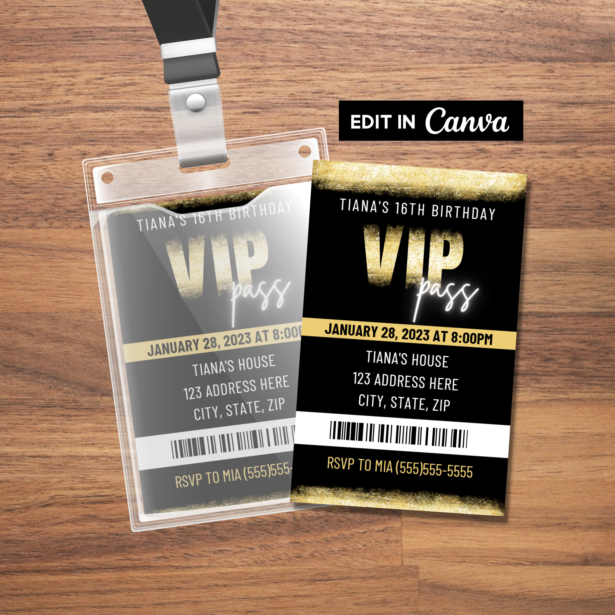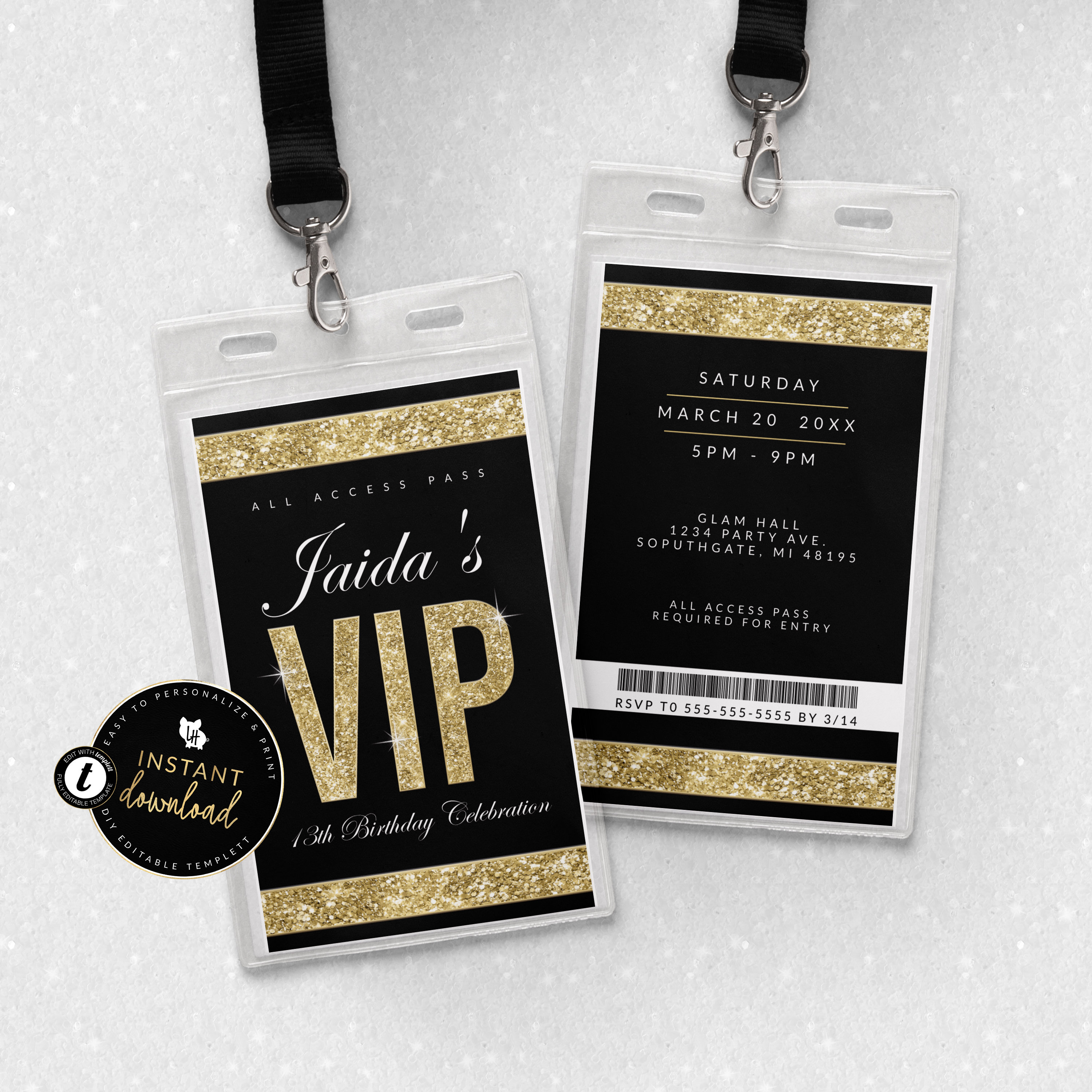 Editable VIP Invitation, Gold VIP Insert for Lanyard, VIP Pass Invi...