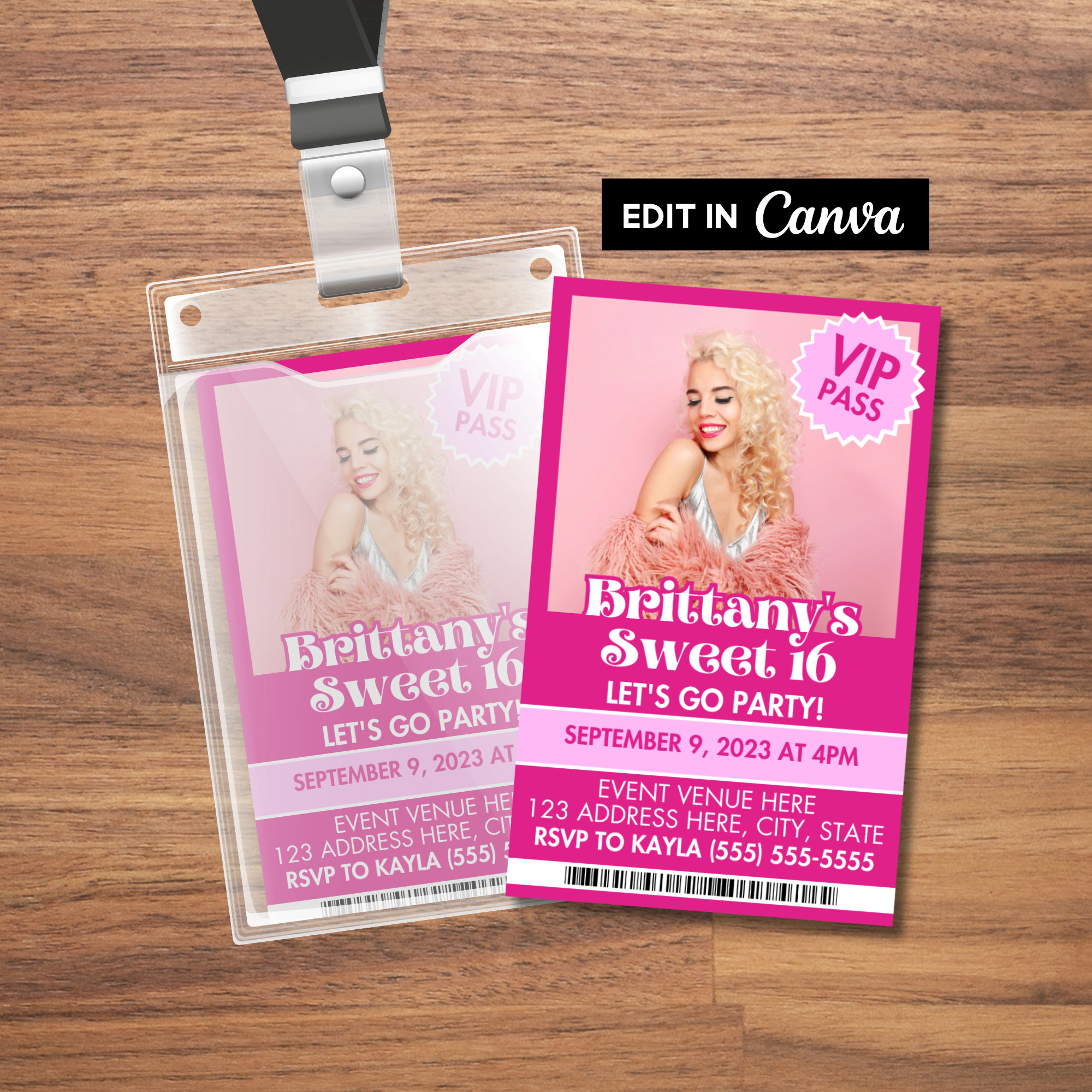 Hot Pink VIP Pass Party Invitation, VIP Insert for Lanyard, VIP Pas...