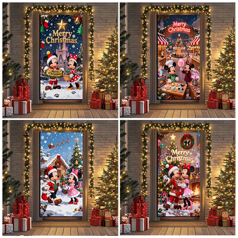 Christmas Mickey Minnie Mouse Door Cover Backdrop Decorations Mickey Minnie Indoor Outdoor Porch Bac...
