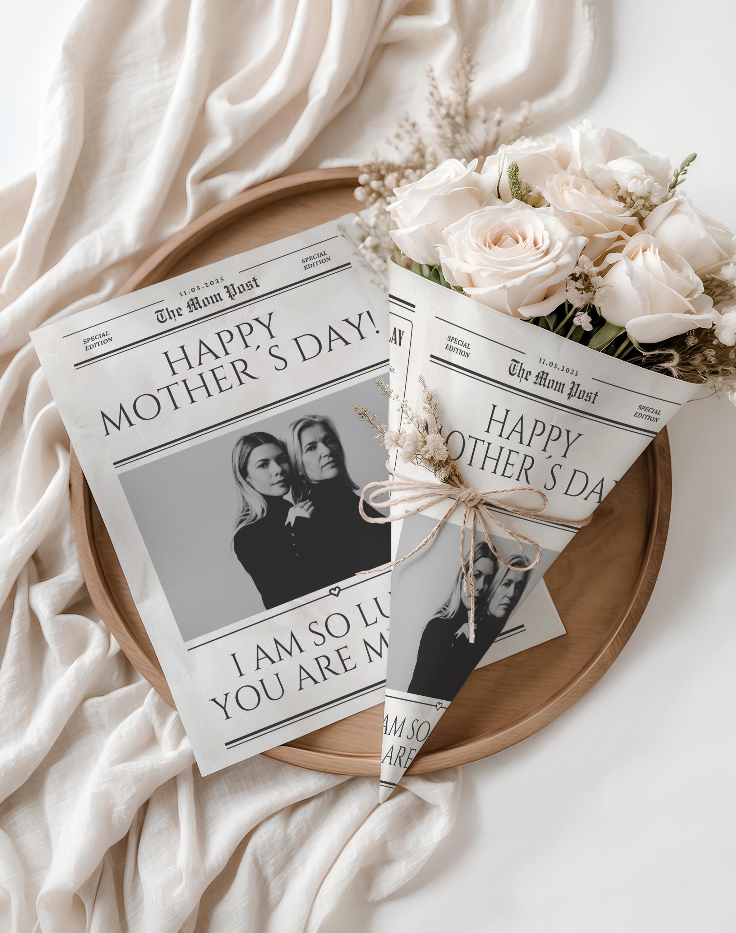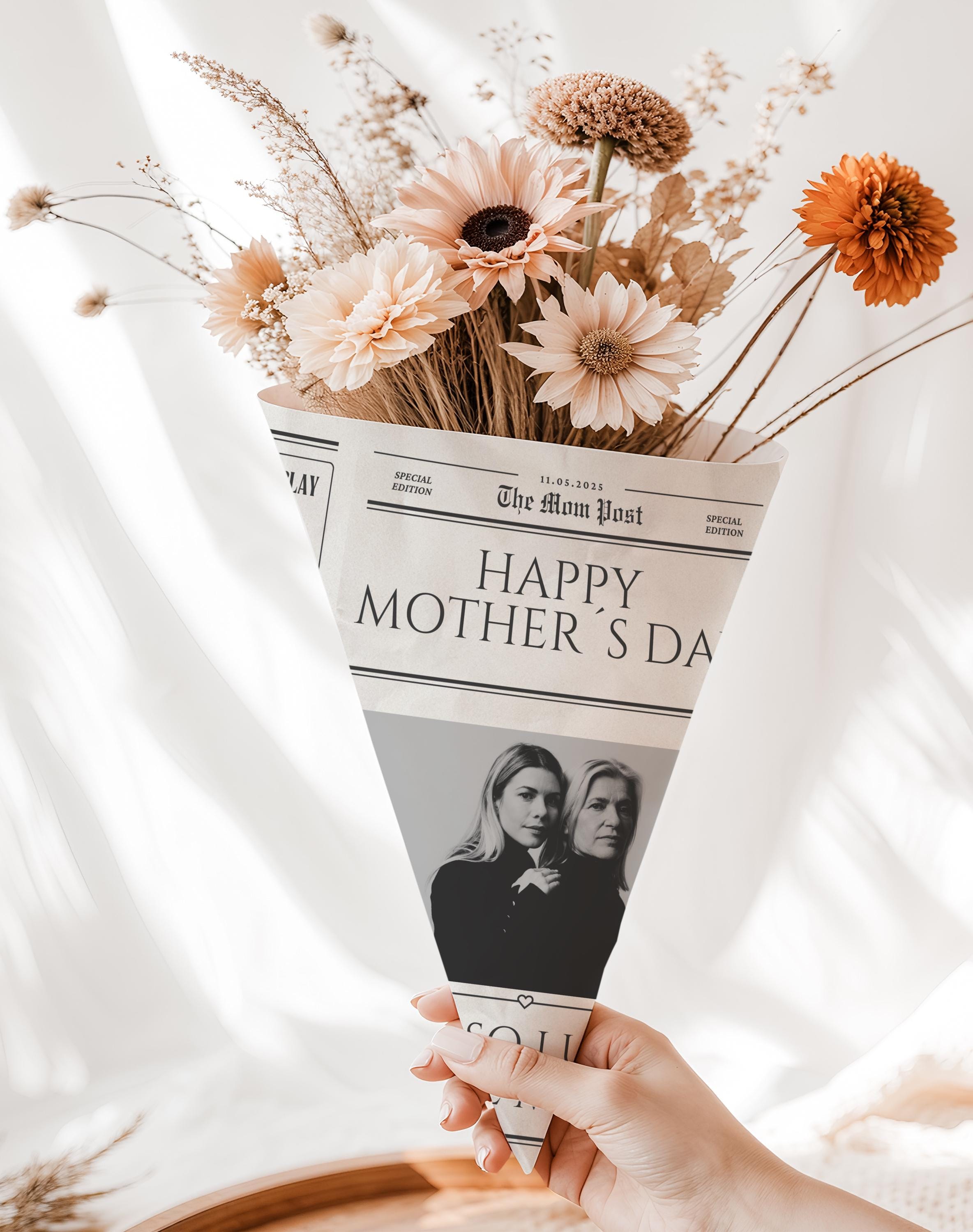 Mothers Day Flower Bouquet Wrap Newspaper Template Canva editable F...