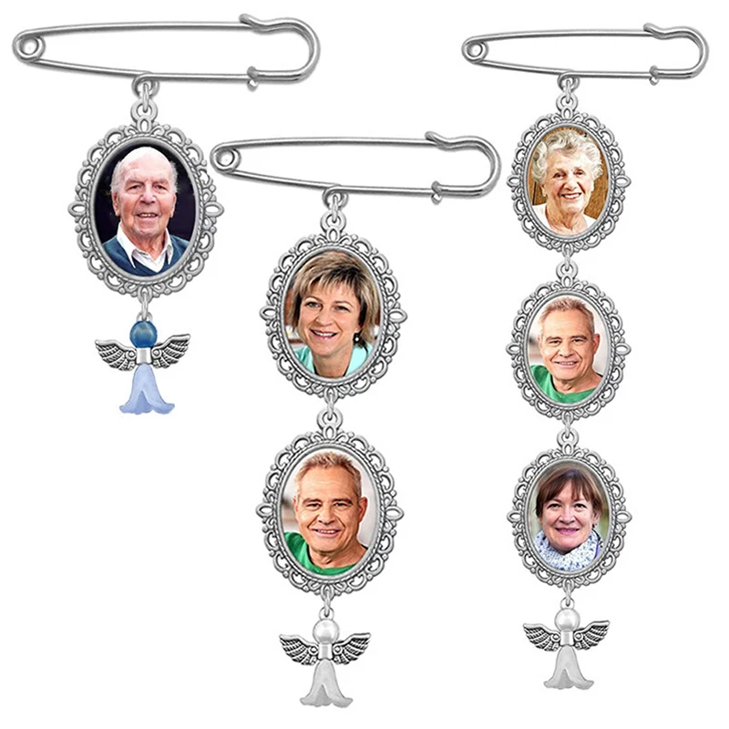 Wedding Boutonniere Oval Charm Brooch Angel Wing Photo Pin Mother o...