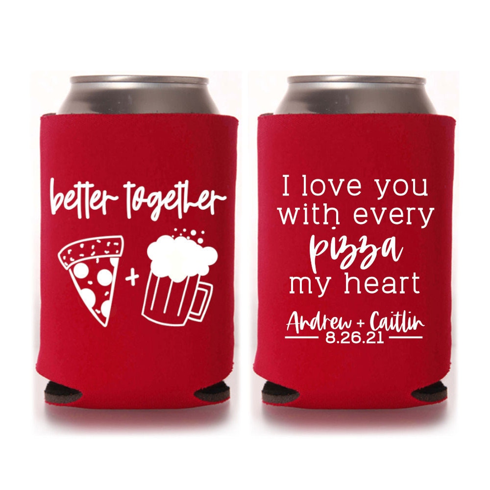 Personalized Better Together Pizza Wedding Can Coolers | Custom Rec...