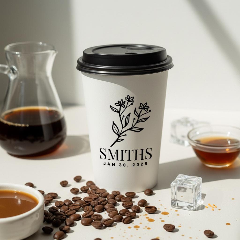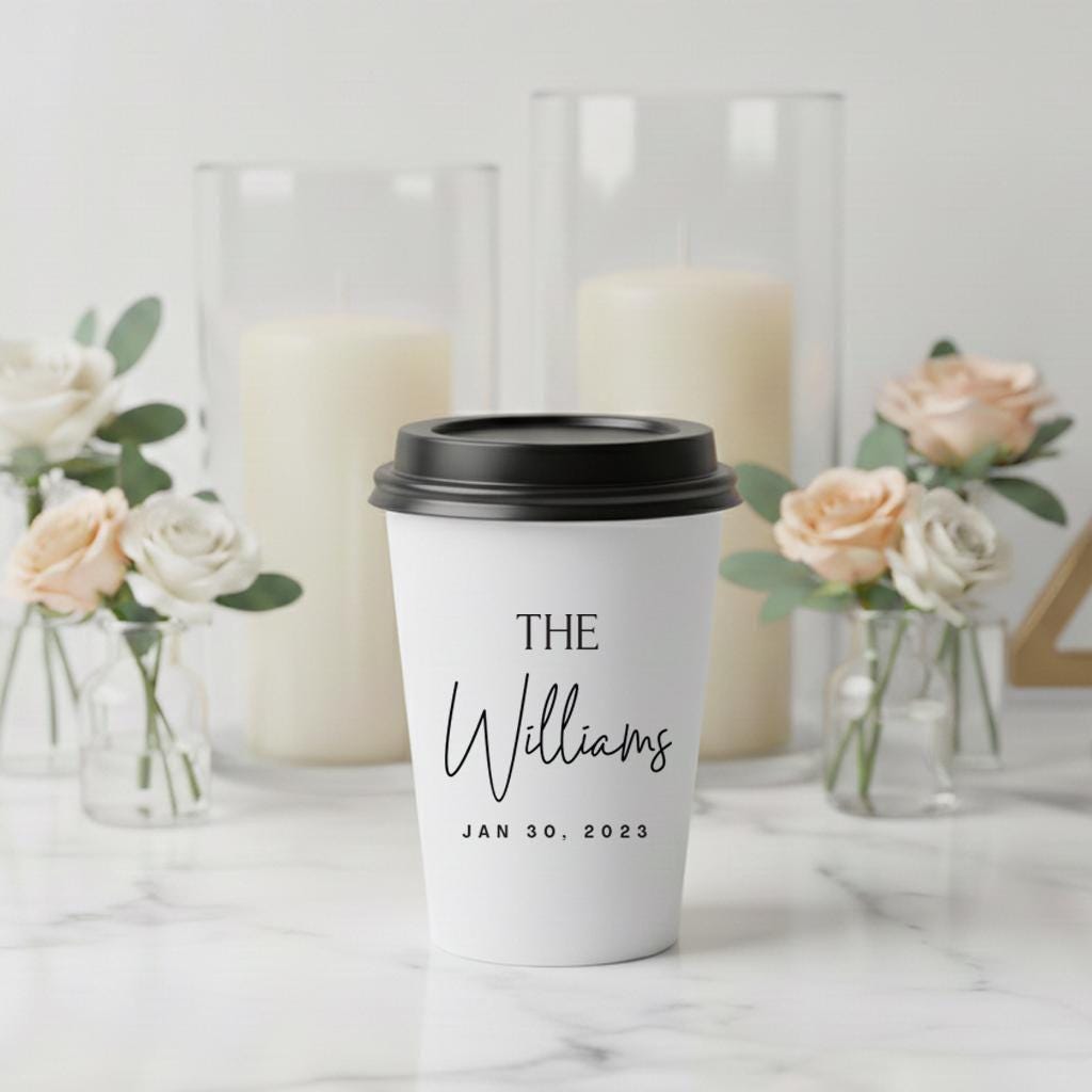 "Custom Wedding Coffee Cups, Personalized Wedding Coffee Cups, Disposable Wedding Coffee Cup as...