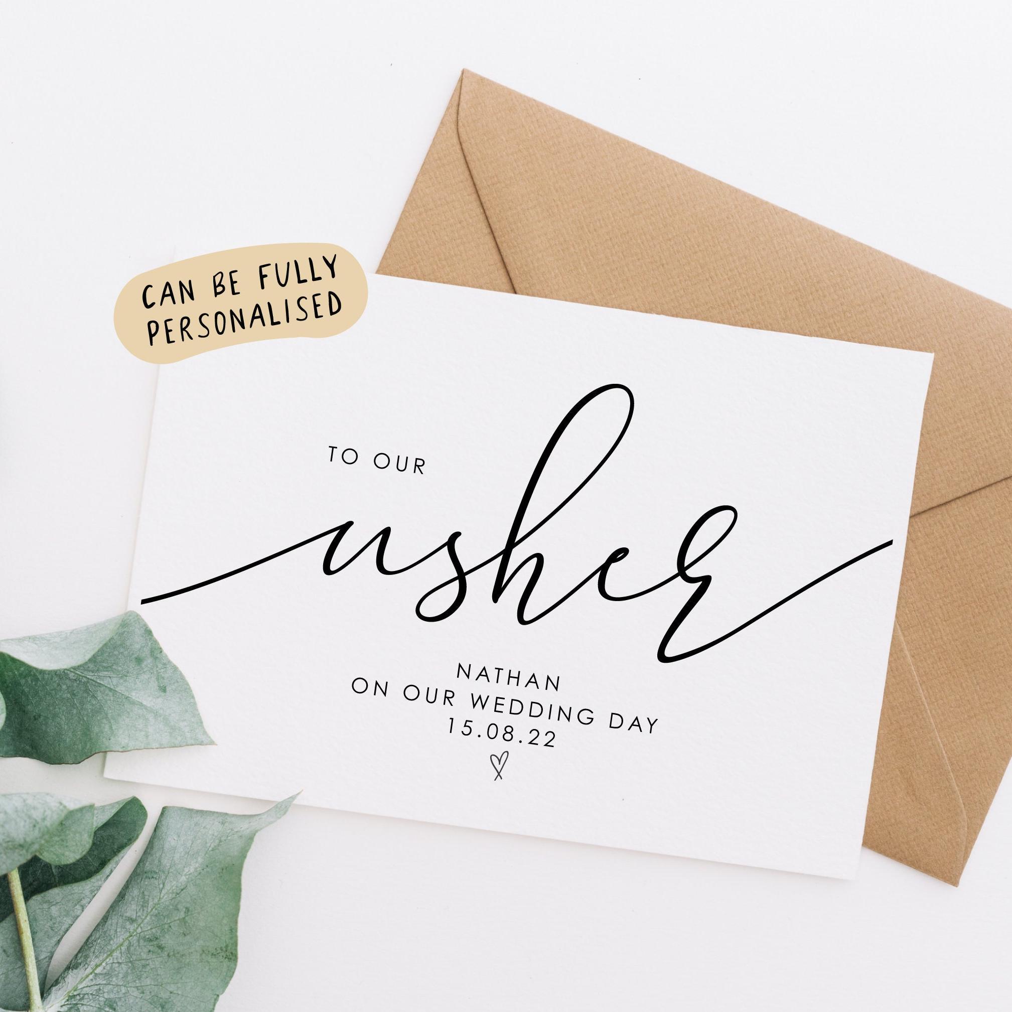 Usher Wedding Day Card Personalised, To our usher on our wedding da...