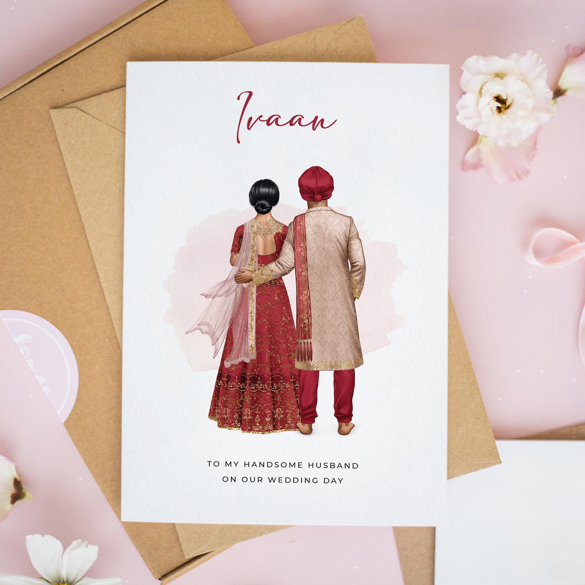 Personalised Hindu Bride & Groom Wedding Card, Asian Wedding Ca...