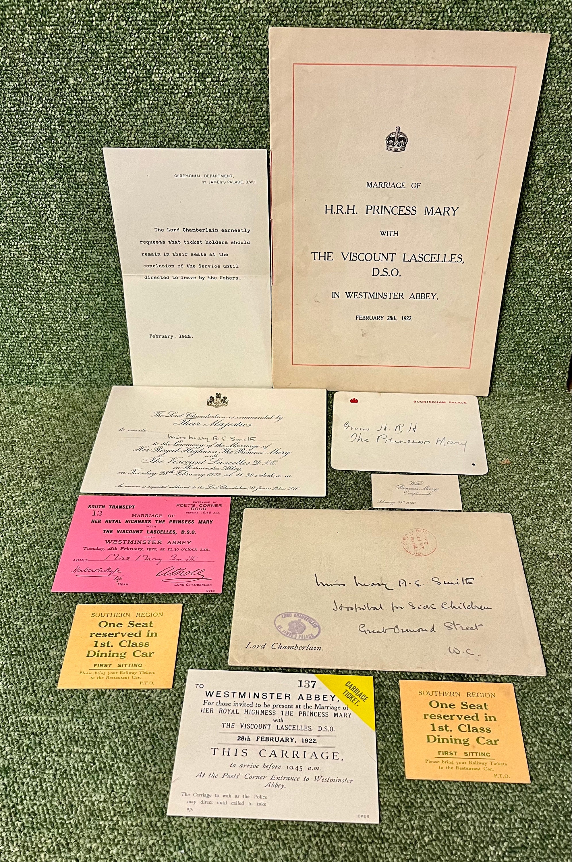 Rare 1922 Original Wedding Invitation Princess Mary to Viscount Las...