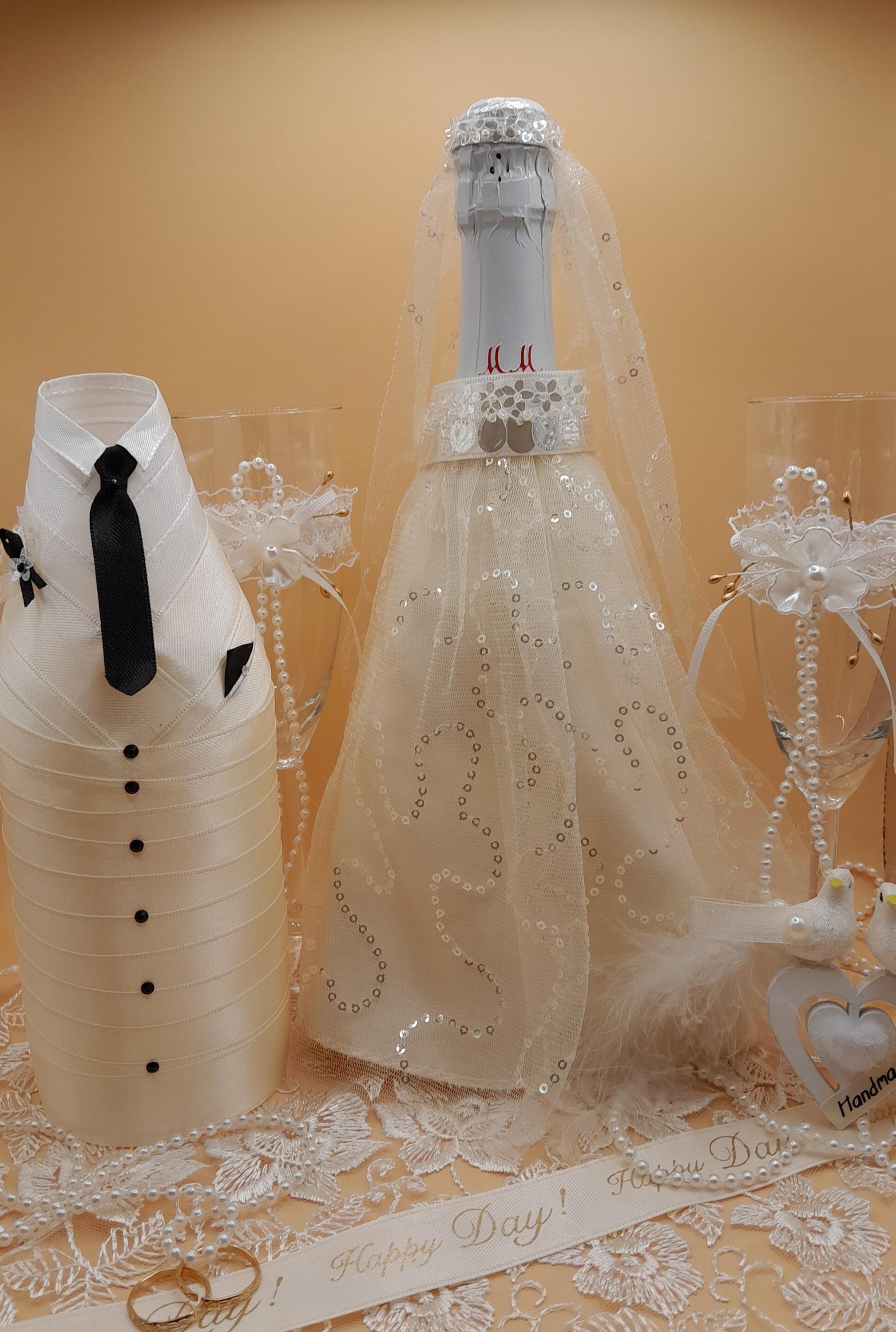 Bride and Groom Champagne Bottle Outfits plus gift of champagnes gl...