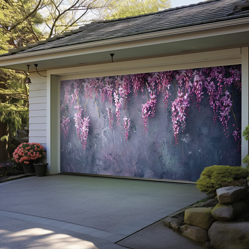 Wisteria Flower Painting Outdoor Garage Door Cover Banner Beautiful...