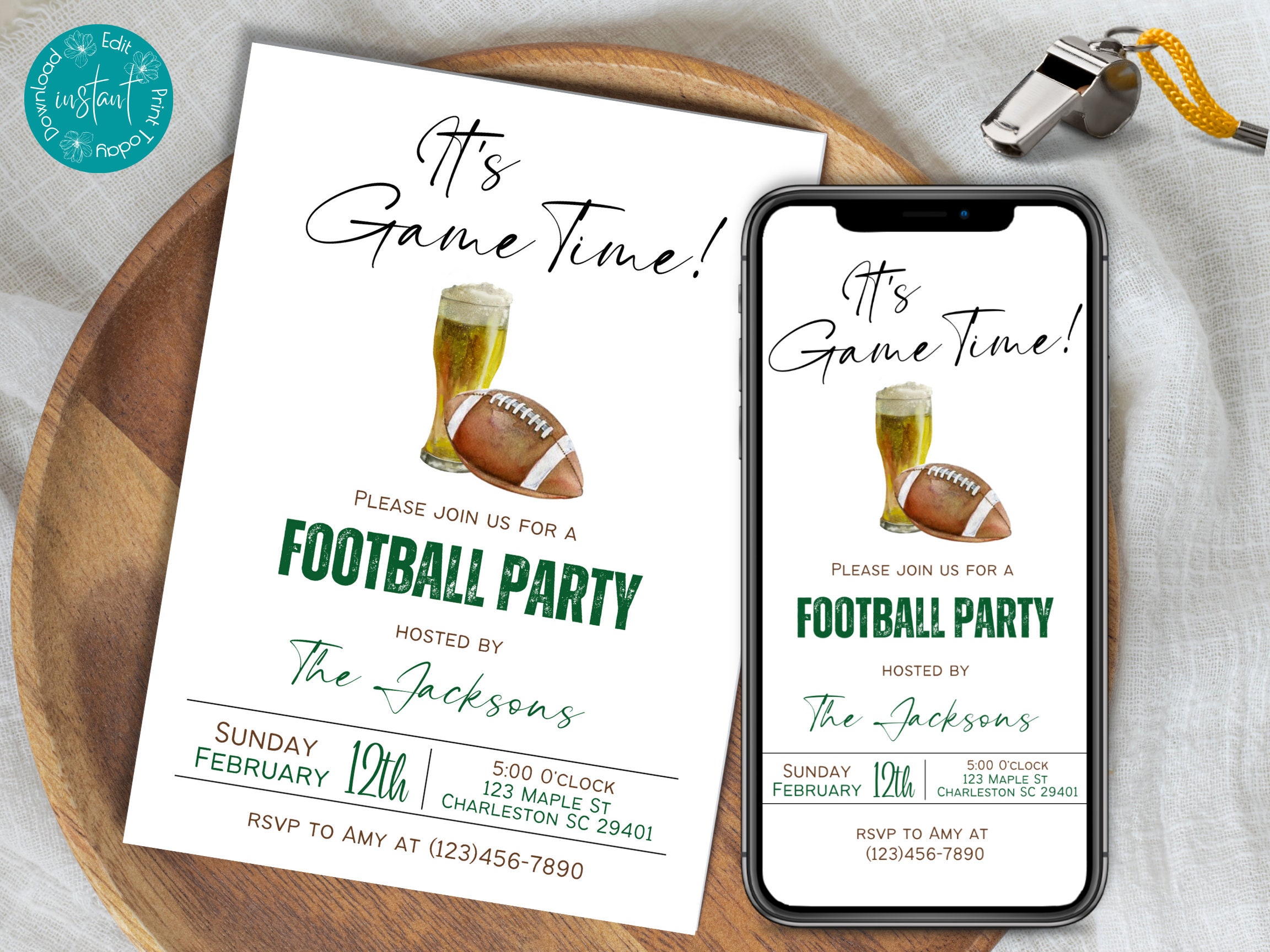 Editable Football Championship Party invitation template. Perfect for your next Super Bowl or Footba...