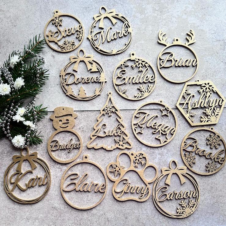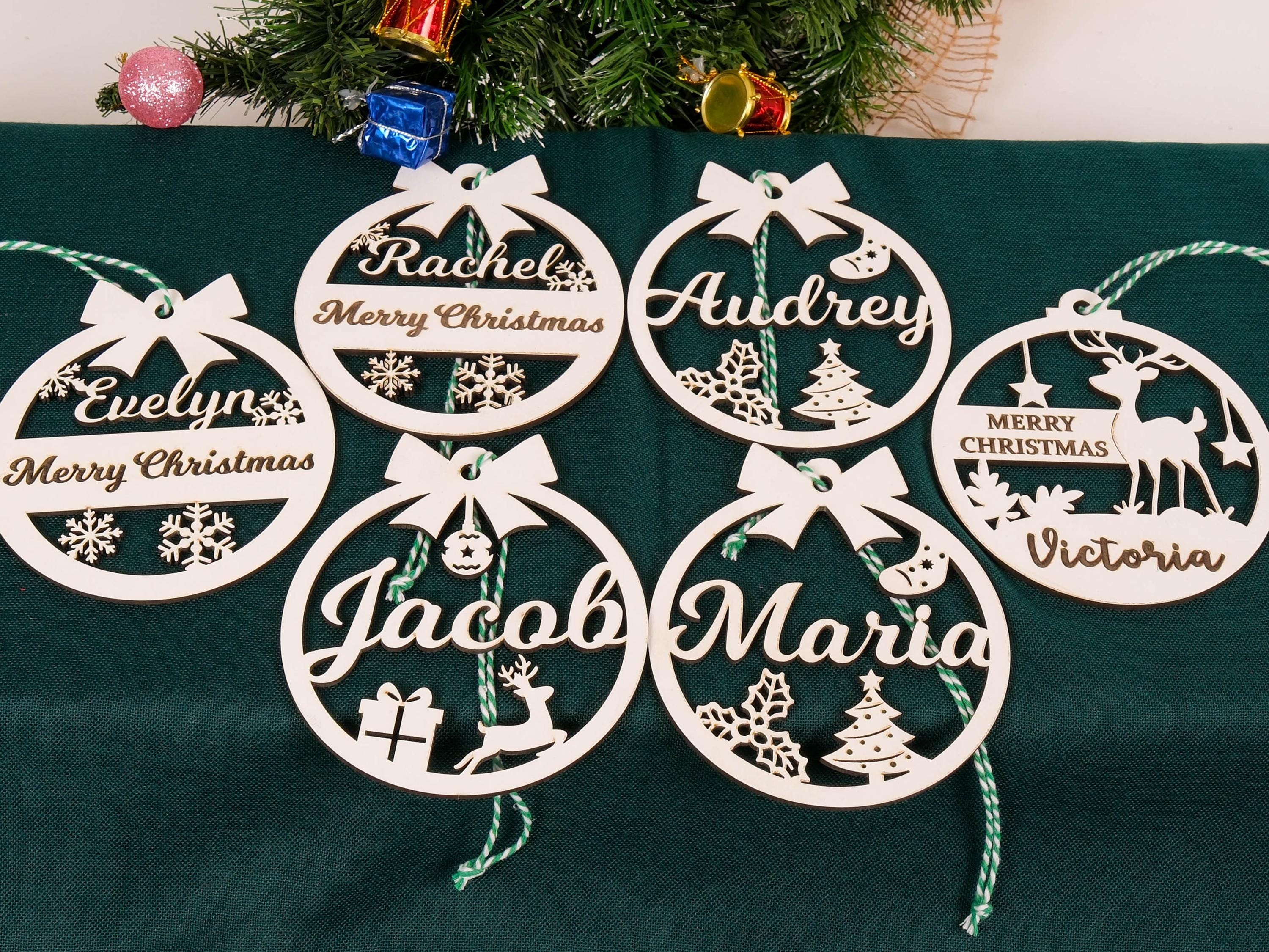 Christmas ornaments Personalized Bauble Laser cut names Custom CHRI...