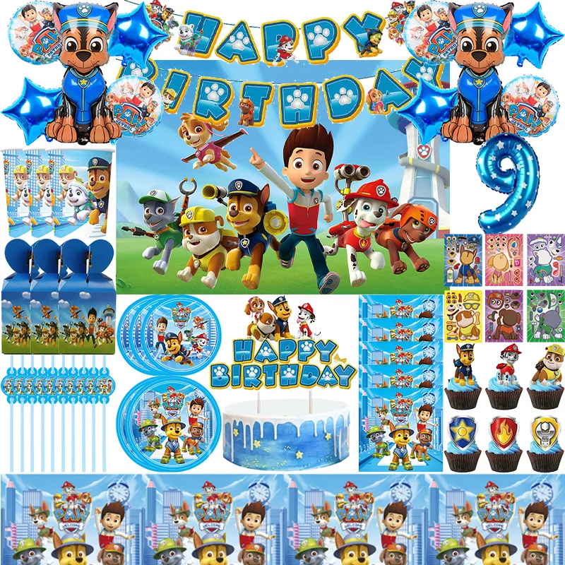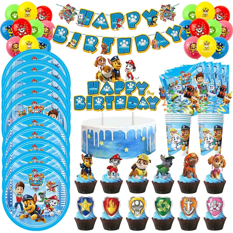 Paw Patrol Birthday Decoration Party Supplies Paw Patrol Balloons Cake Topper Plate Cup Tableware Ta...