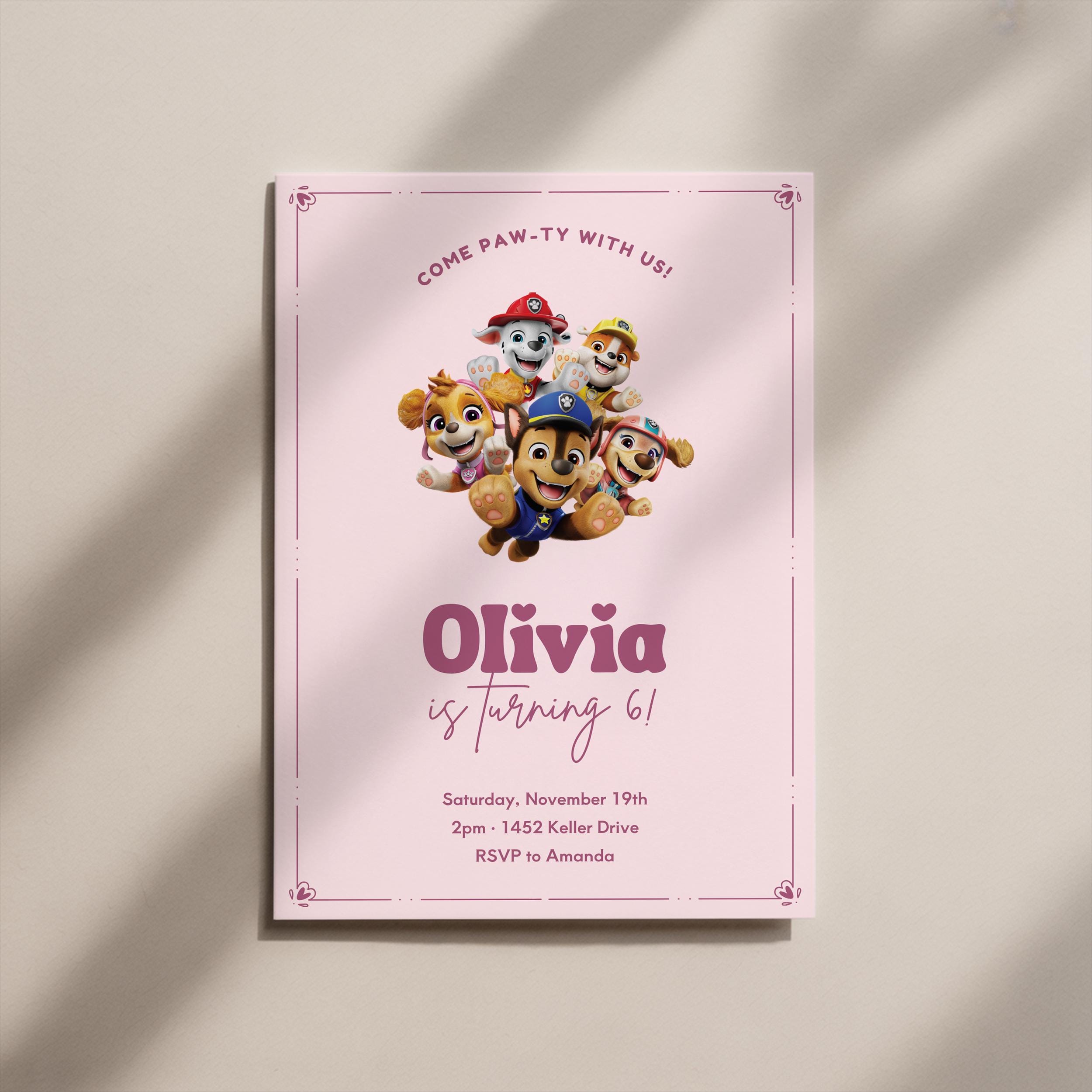 Paw Patrol Birthday Invite for Girls, Editable Paw Patrol Birthday ...