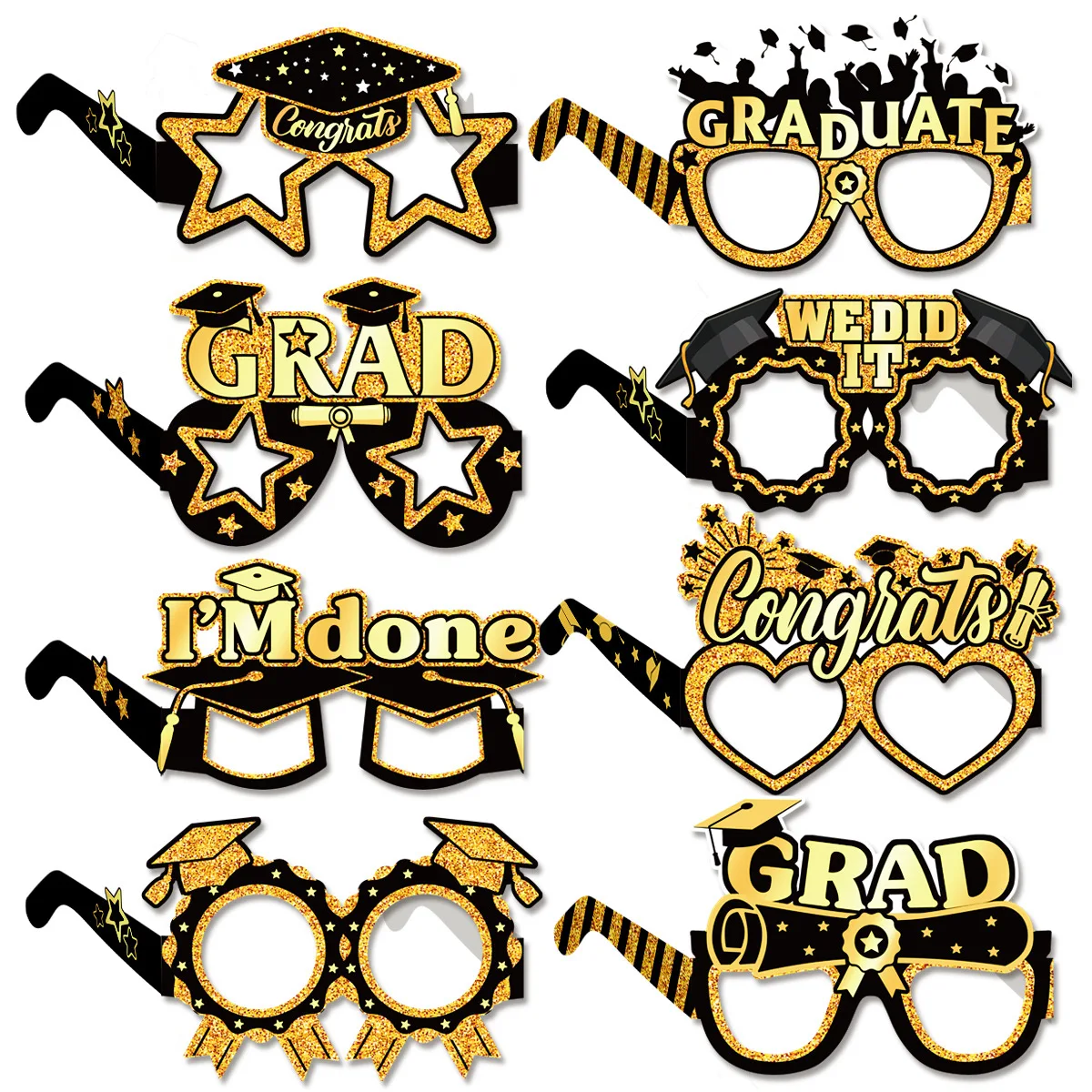 8 Pcs Black Gold 2026 Graduation Season Photo Props Congrats Grad E...