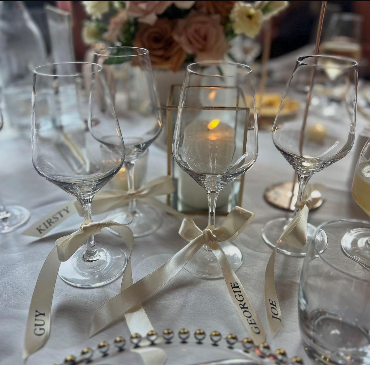 Personalised cream name ribbons | champagne place names | personali...