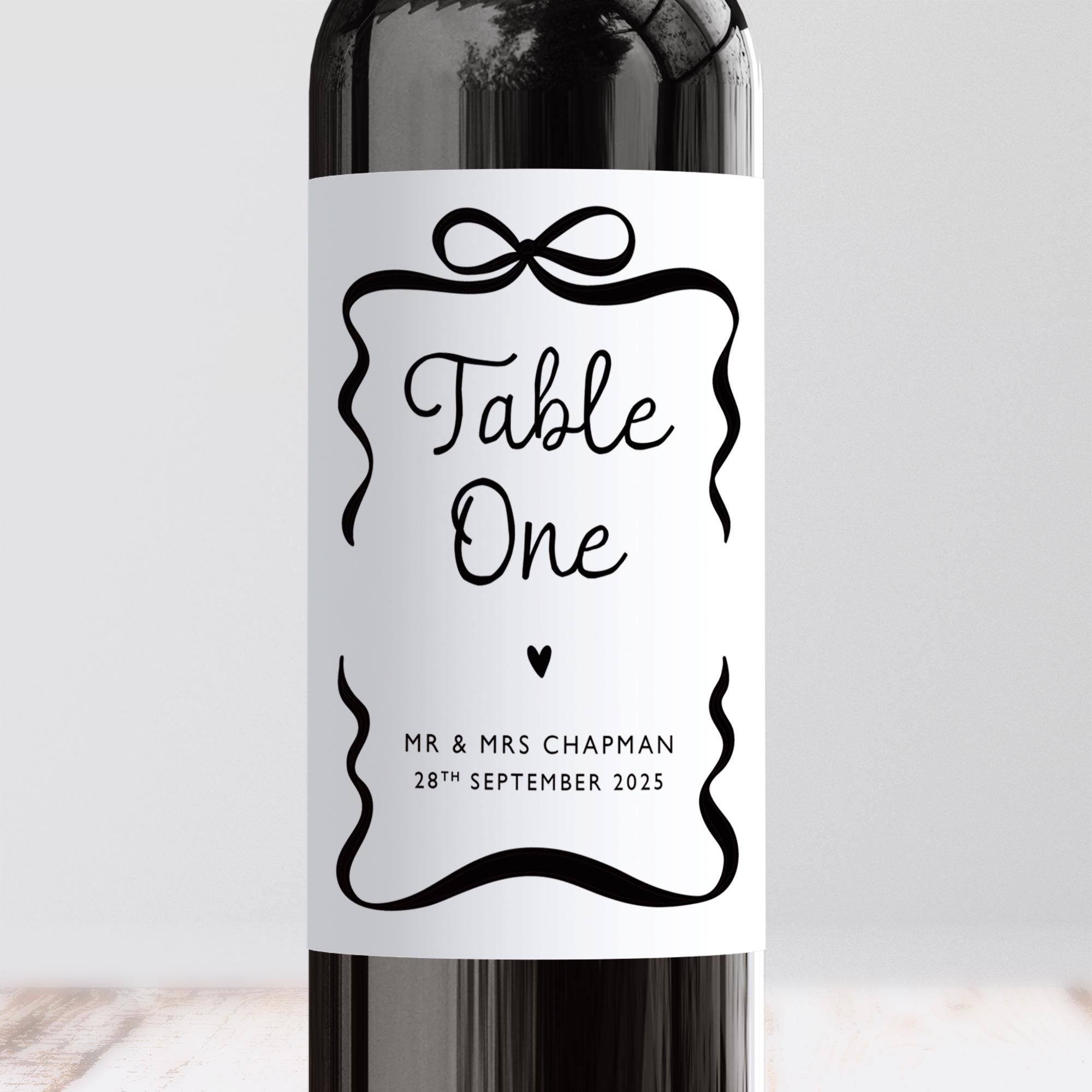 "Personalised wedding table number/name gloss wine label, perfect for an alternative seating ch...
