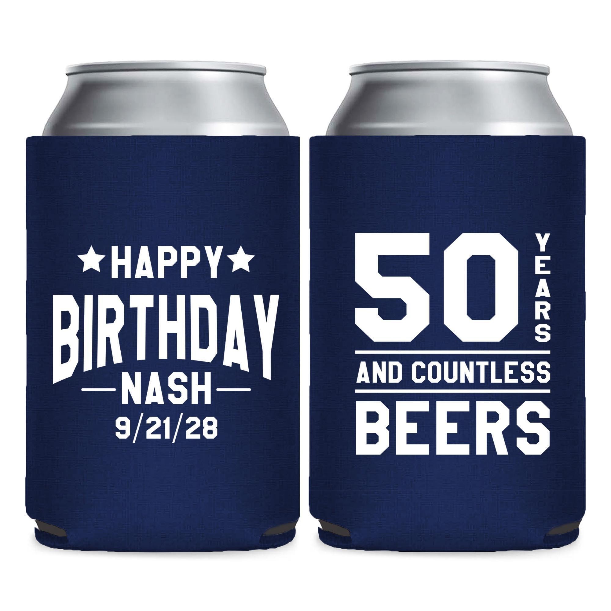 50th Birthday Favors, Personalized Birthday Can Cooler Favors, Cust...